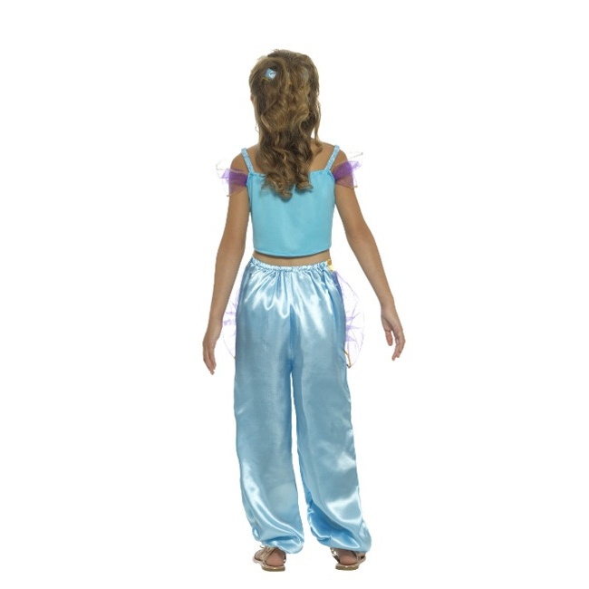 Un joli costume sur le thème arabe pour les filles, avec un haut, un pantalon et une coiffe pour la tête.