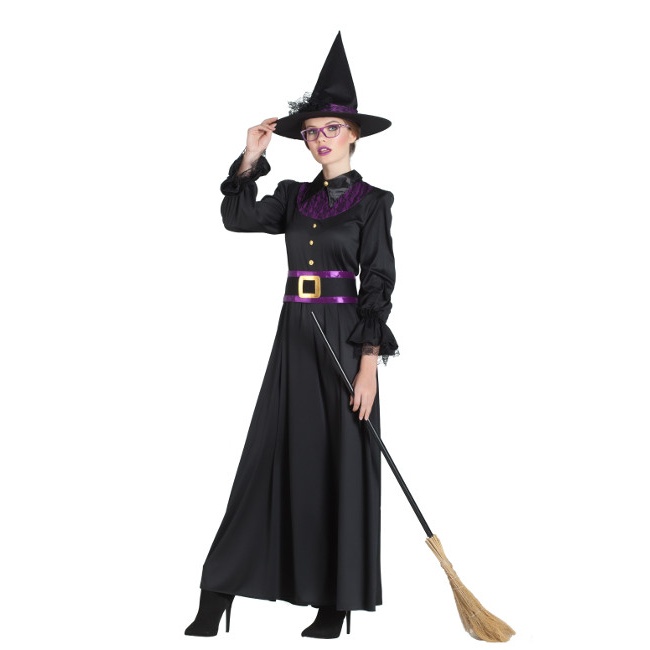 Voici une superbe robe de sorcière que vous pourrez compléter avec du maquillage vert et un long nez que vous trouverez dans notre section accessoires.