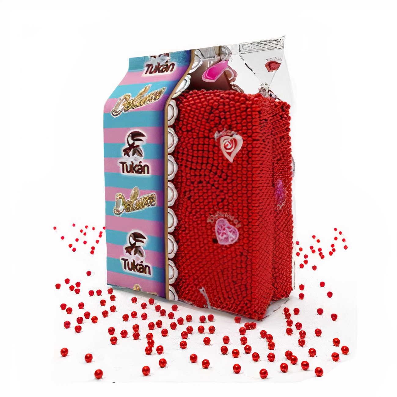 Ingrédients Rouges: Chocolat blanc 48% (sucre, beurre de cacao, lait écrémé en poudre, lactosérum en poudre, matière grasse laitière anhydre, émulsifiant: lécithine de soja (E-322), polyricinoléate de polyglycérol (PGPR) (E-476), arôme naturel de vanille.) Céréale 19% (Farine de riz, farine de blé, sucre, malt en poudre (blé) et sel.), saccharose, stabilisant (gomme arabique), gomme laque, cires (E-905 et E-903) amidon et additifs E170, E129 et E172. Le colorant E129 peut avoir des effets négatifs sur l'activité et l'attention chez les enfants.