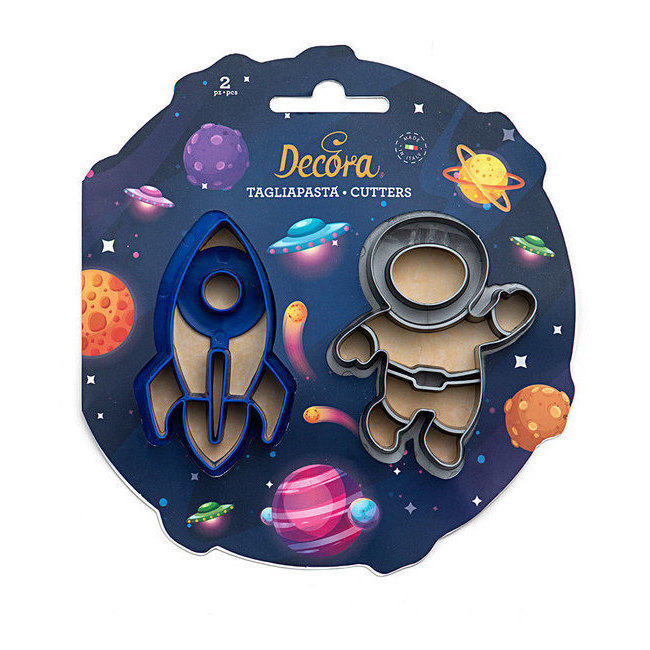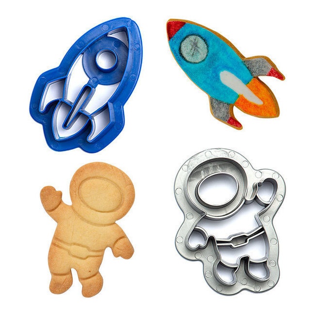 Partez à la conquête de l'espace et décorez vos biscuits auxquels vous pourrez donner forme avec ces emporte-pièces.