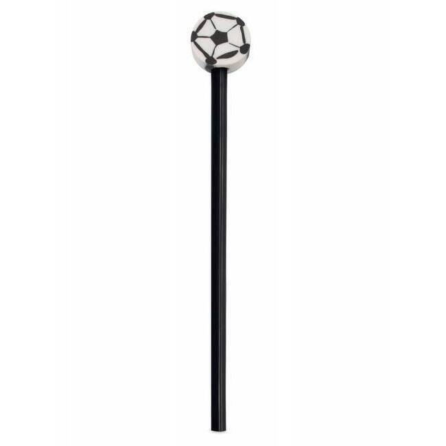 Crayon en bois de couleur noire avec une gomme en forme de ballon de football.