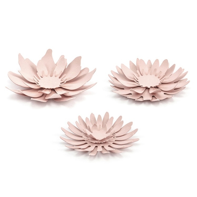 Un ensemble qui contient 12 pièces de papier de couleur rose avec lesquelles vous pourrez monter 3 fleurs différentes.