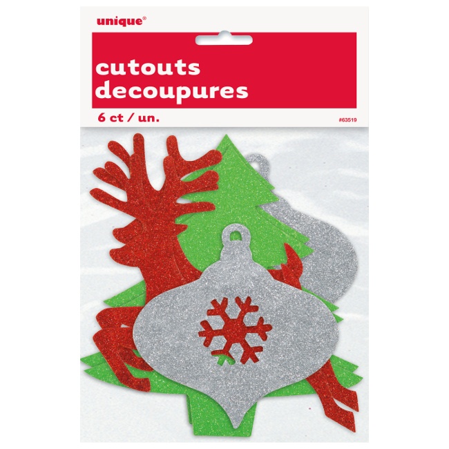 Des décorations avec paillettes que vous pourrez coller ou percer et suspendre pour décorer votre maison de Noël.