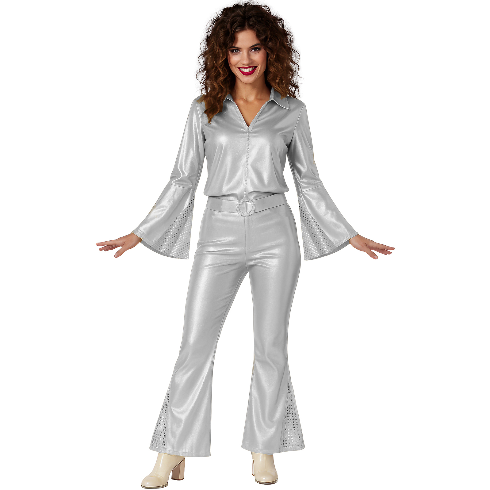 Déguisement de femme en style disco métallisé