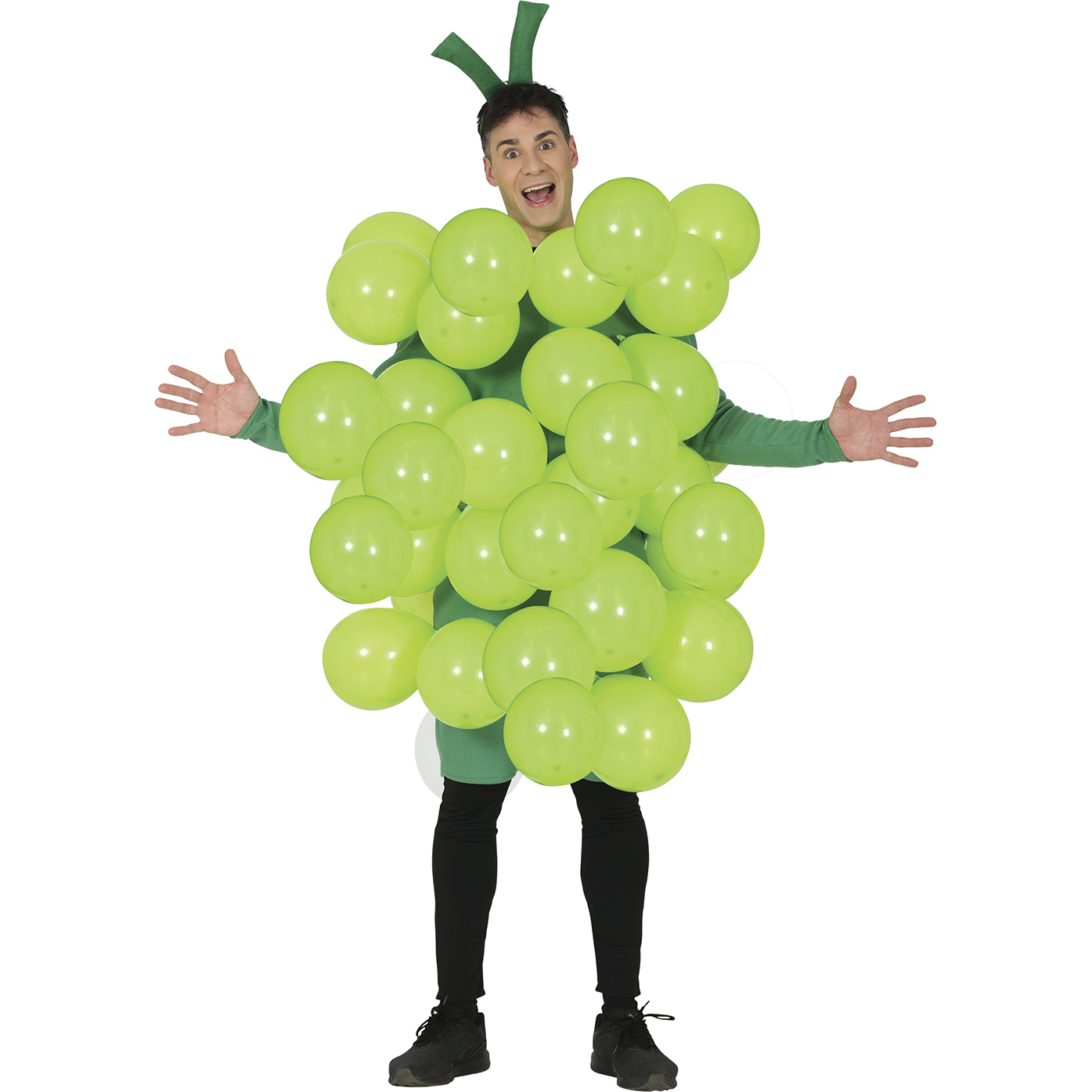 Amusez-vous avec ce déguisement qui comprend une combinaison verte sur laquelle vous fixerez les ballons inclus à l'aide des adhésifs fournis, vous transformant ainsi en un raisin vert très amusant et original.
