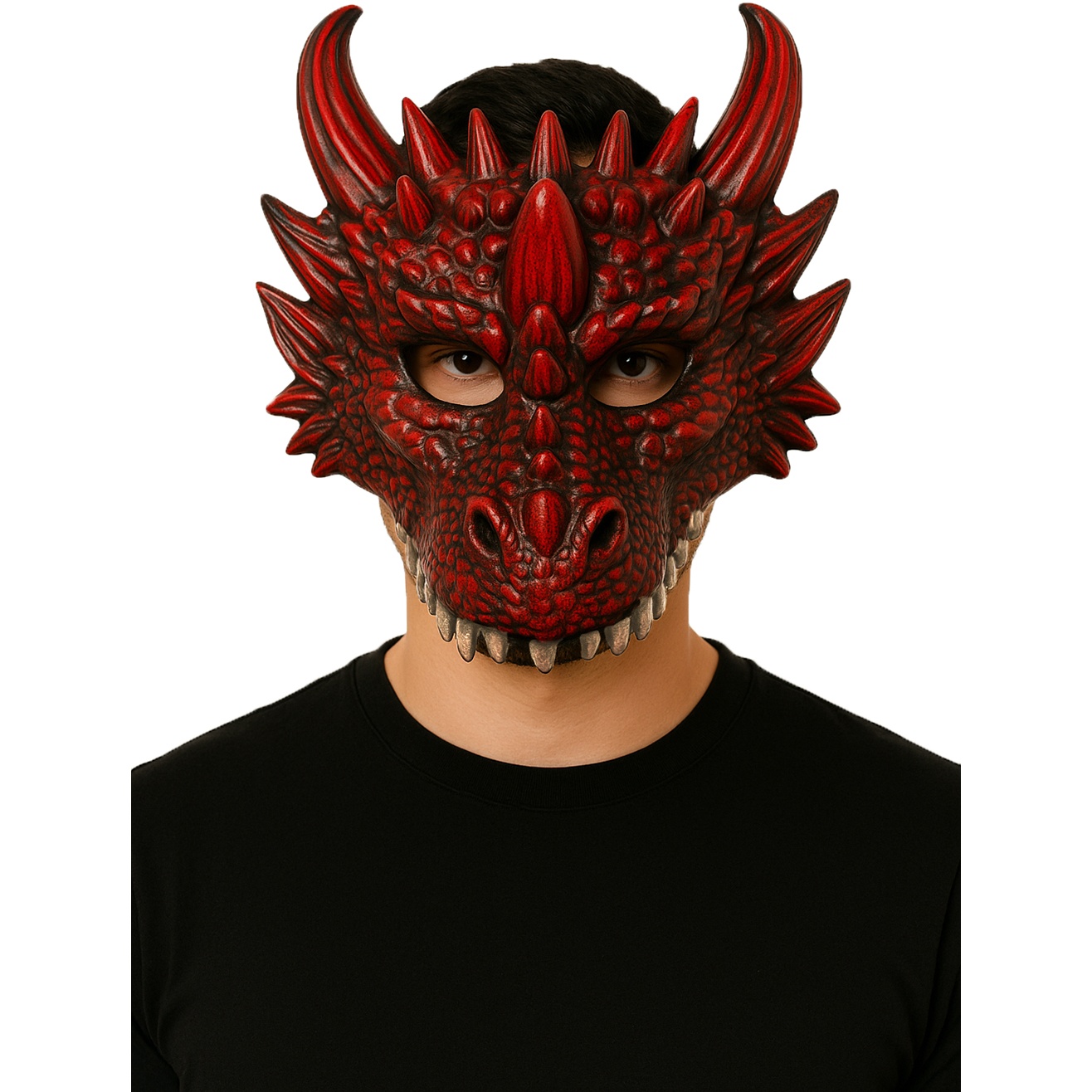 Demi-masque de dragon d'un rouge intense, parfait pour compléter votre tenue fantastique ou votre déguisement.
