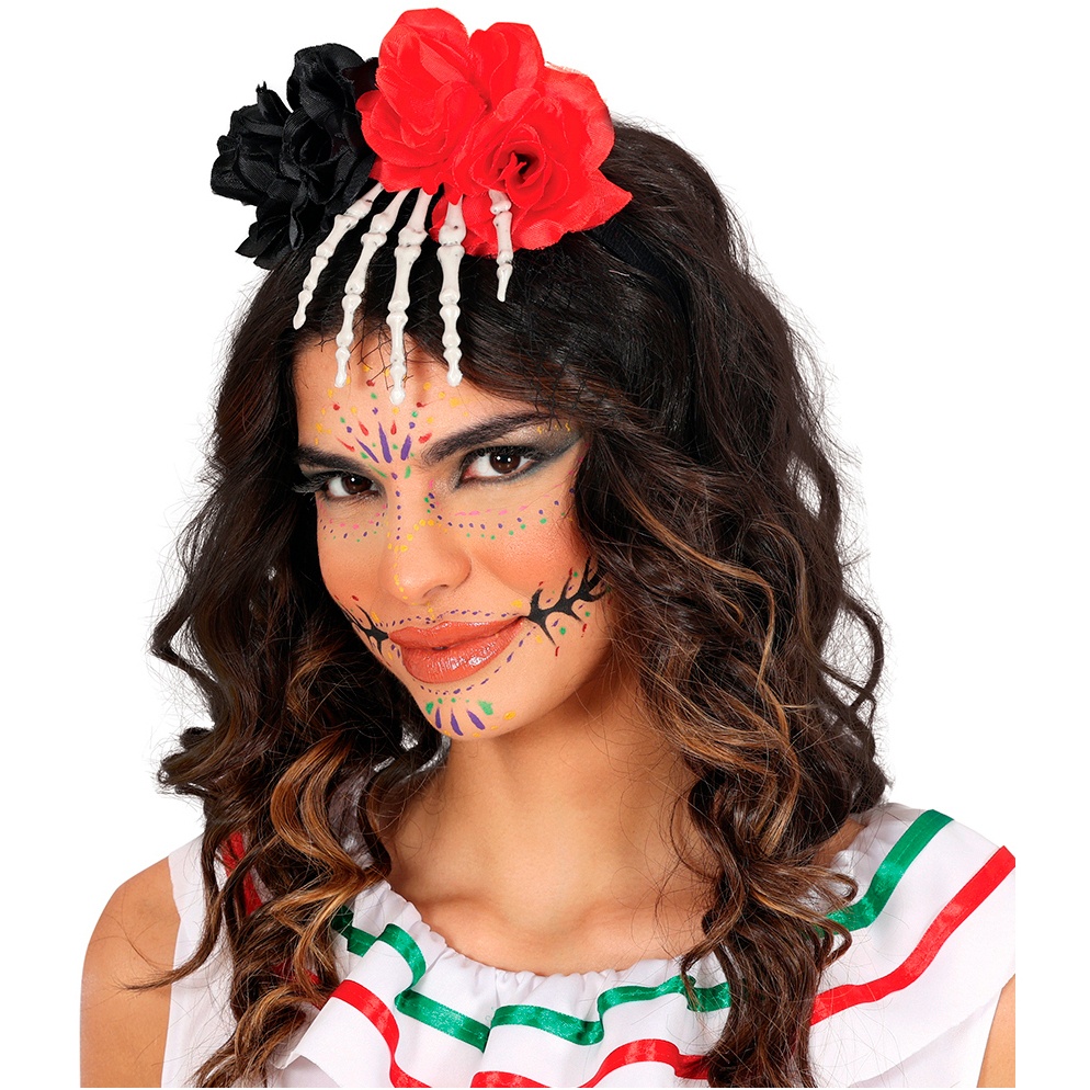 Diadème avec main squelette et fleurs
