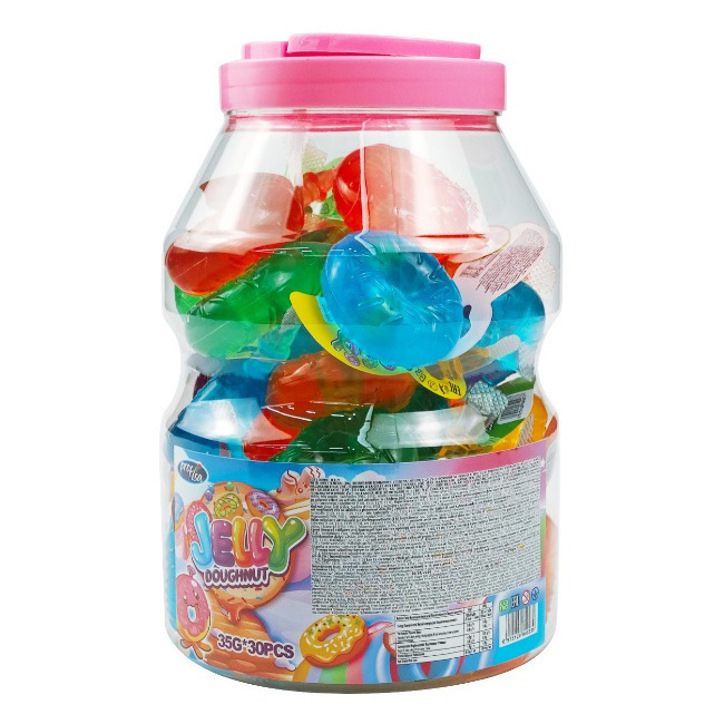 Ingrédients: eau, gélatine, régulateurs d'acidité (E330, E331), édulcorants (E950, E951, E955), arômes, conservateurs (E202), colorants (E102, E110, E129, E133). Les colorants E110, E102, E129 peuvent avoir des effets négatifs sur l'activité et l'attention chez les enfants.