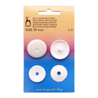 • Mode d'emploi: Coupez le tissu à la taille du patron indiquée au dos de l'emballage. Pliez soigneusement le dôme de la garniture sur l'envers du tissu. Enfin, placez le dos du bouton avec la crête vers l'intérieur, en faisant coïncider le trou avec la poignée. Pressez les deux pièces ensemble.