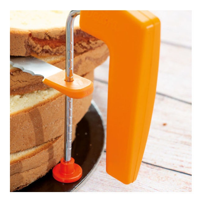 Une lyre pratique pour couper les couches du gâteau de manière uniforme. Elles seront parfaites pour ensuite être garnies d'une délicieuse crème.