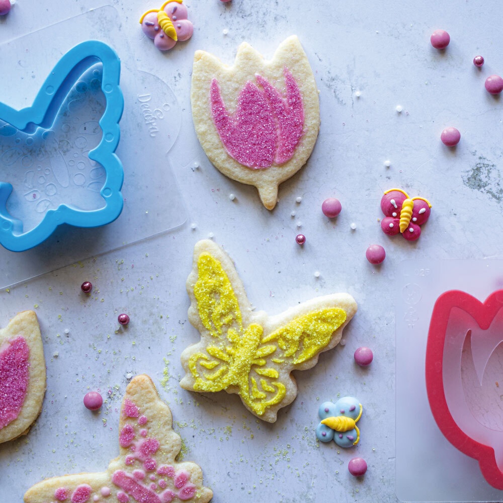 Emporte-pièces papillon et tulipe avec pochoirs