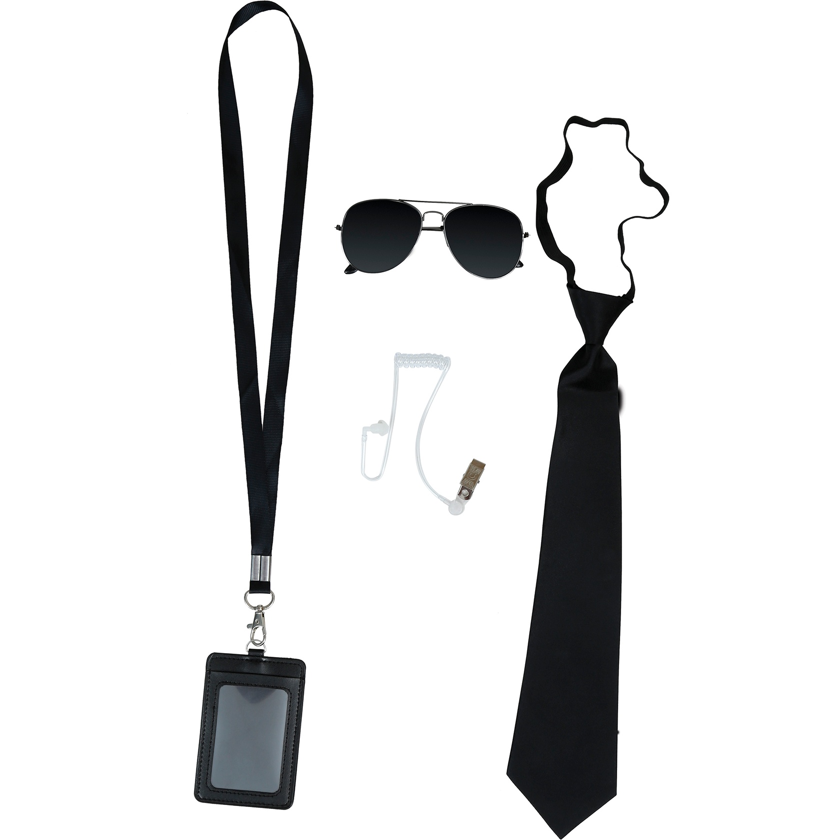 Complétez votre look d'agent secret avec ce set d'accessoires essentiel pour fêtes et événements à thème. Idéal pour transformer une tenue simple en un personnage crédible et professionnel. Accessoires au style réaliste, conçus pour le Carnaval, les enterrements de vie de célibataire et les sessions de jeu de rôle. Design léger et confortable, à porter tout au long de la soirée.