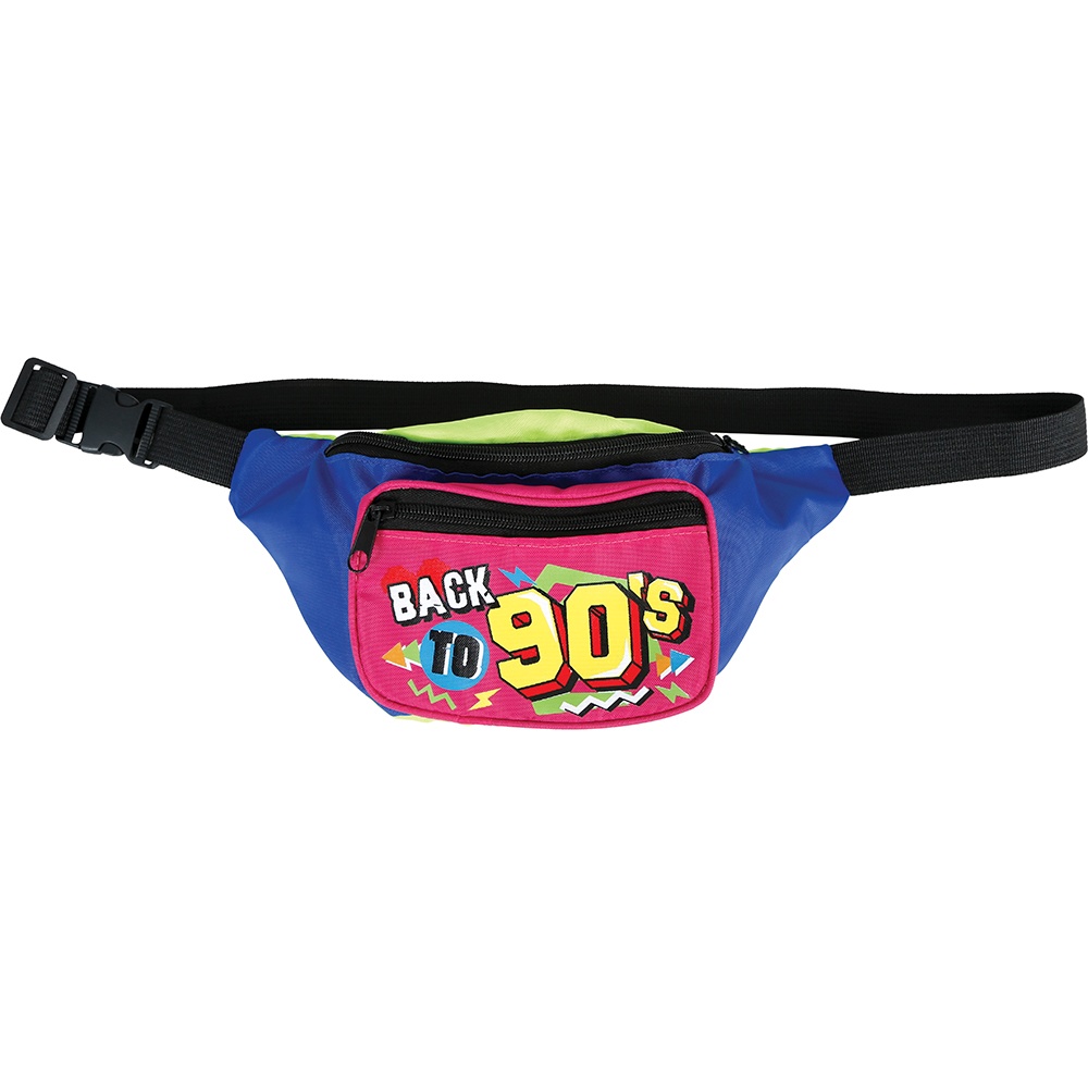 - Casquette et sac banane au look rétro "Back to 90's" aux couleurs néon, parfaits pour capter l'attention sur la piste de danse.