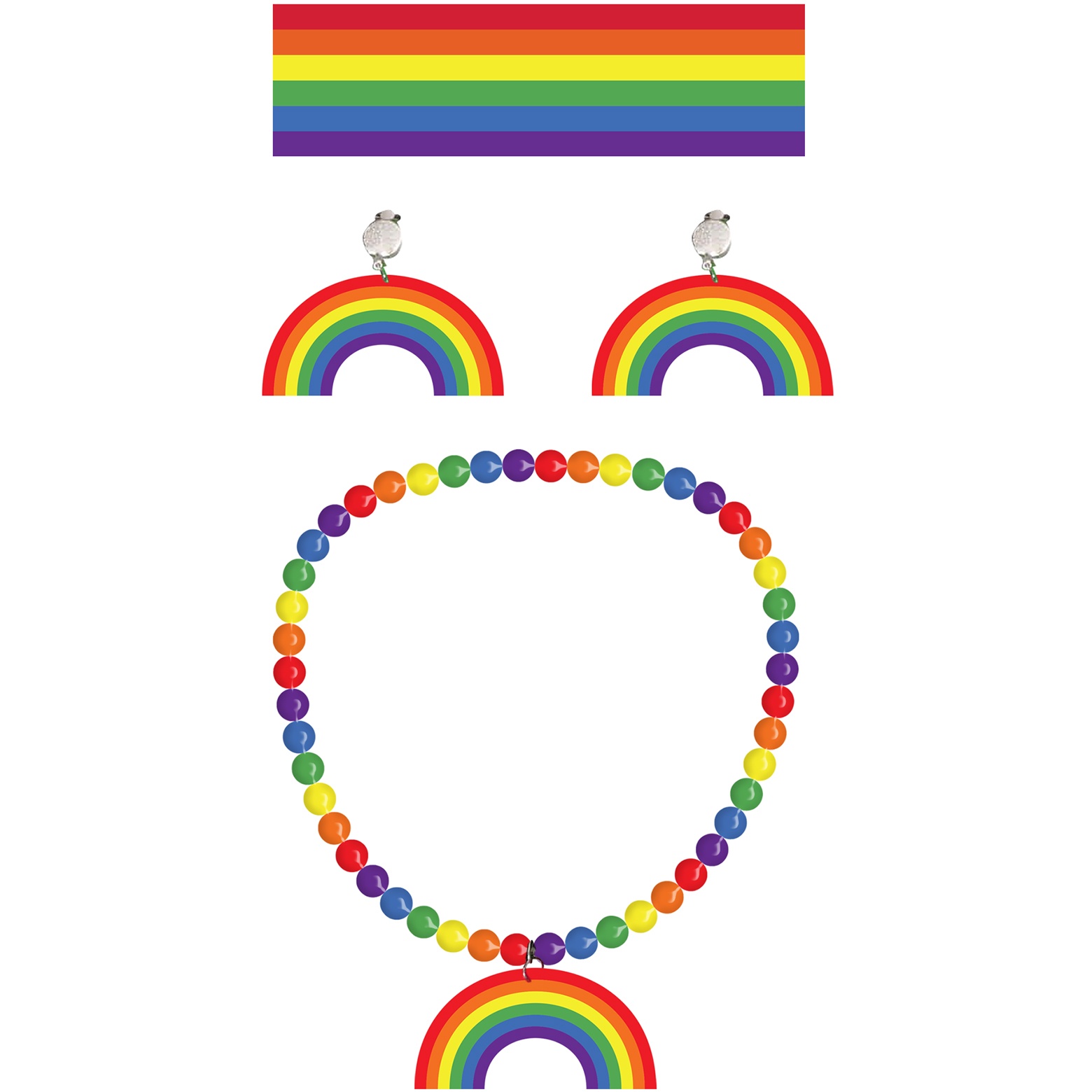 Ensemble arc-en-ciel avec collier, boucles d'oreilles et bandeau