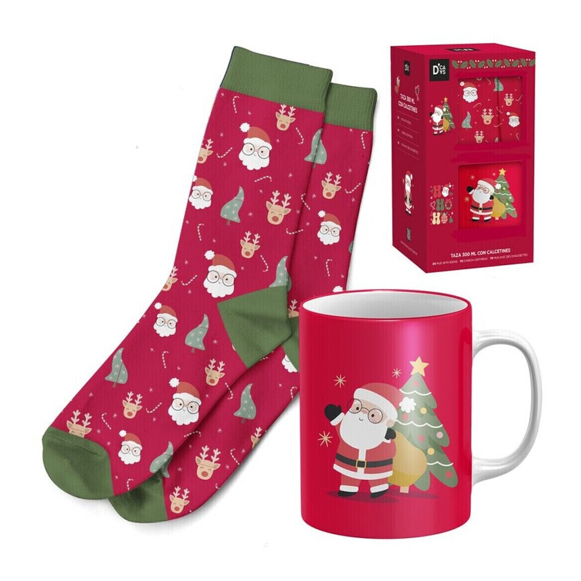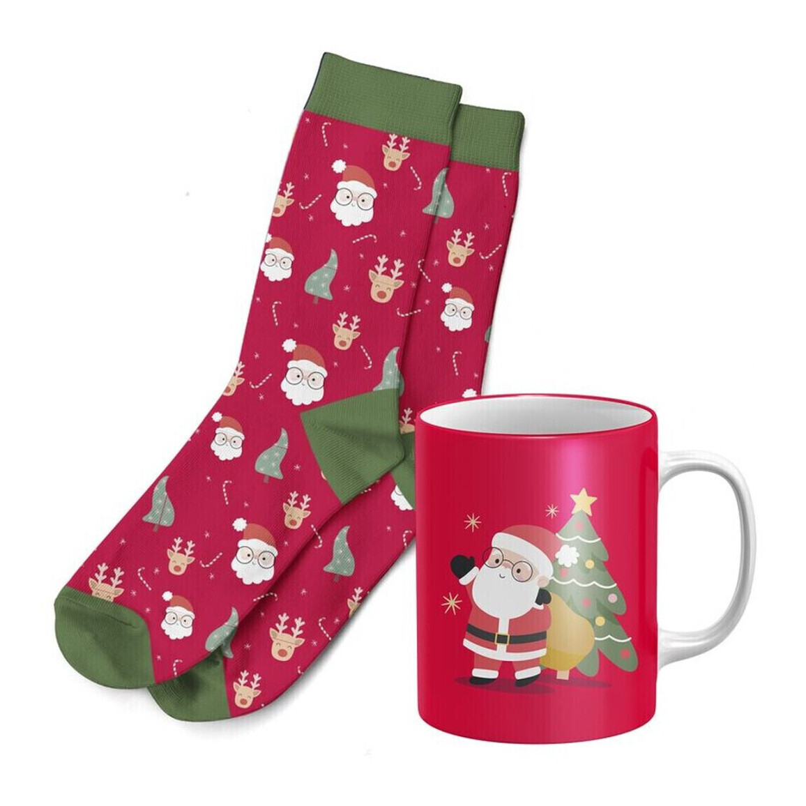 Ensemble cadeau avec tasse et chaussettes de Noël Père Noël rouge