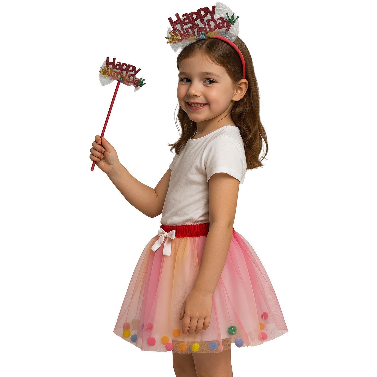 Ensemble "Happy Birthday" avec serre?tête, tutu et baguette