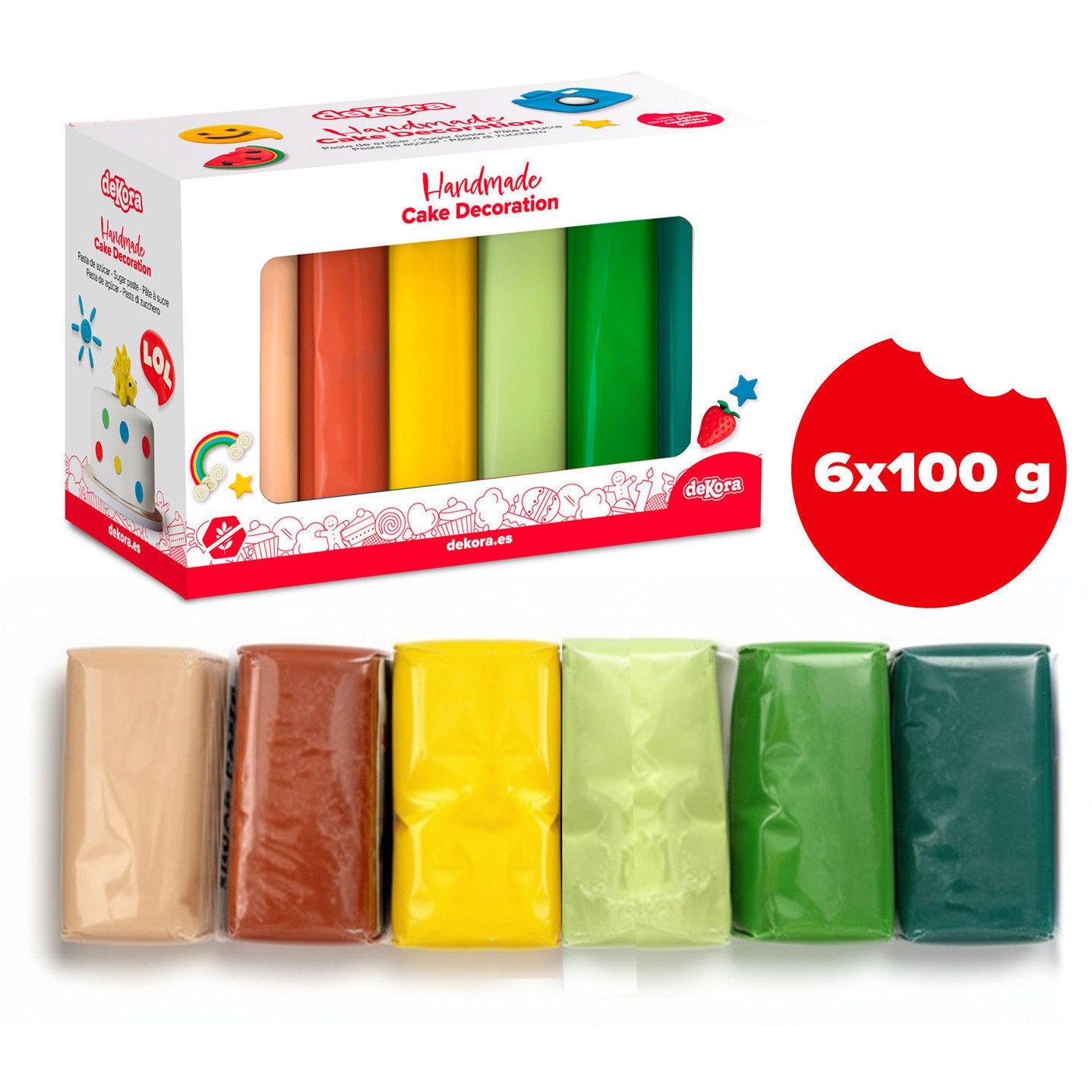 Ensemble de pâte à sucre de 6 couleurs la jungle de 600 gr - Dekora