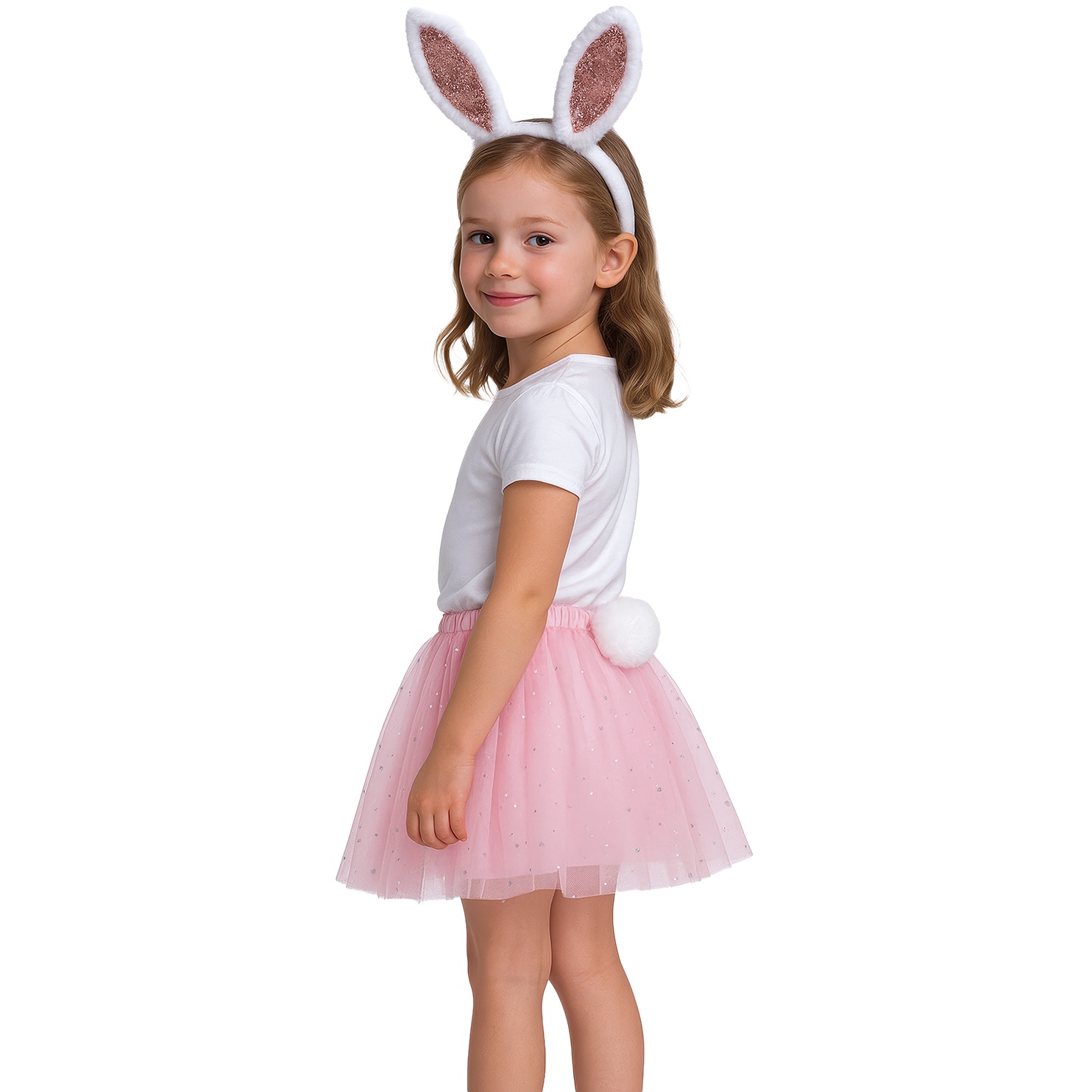 Conçu pour que vous puissiez créer un look de petite lapine, doux et ludique. Idéal pour les jeux, les anniversaires et le Carnaval. Des pièces confortables et légères, faciles à associer aux tenues du quotidien. Finitions pailletées pour apporter une touche spéciale à toutes vos célébrations.