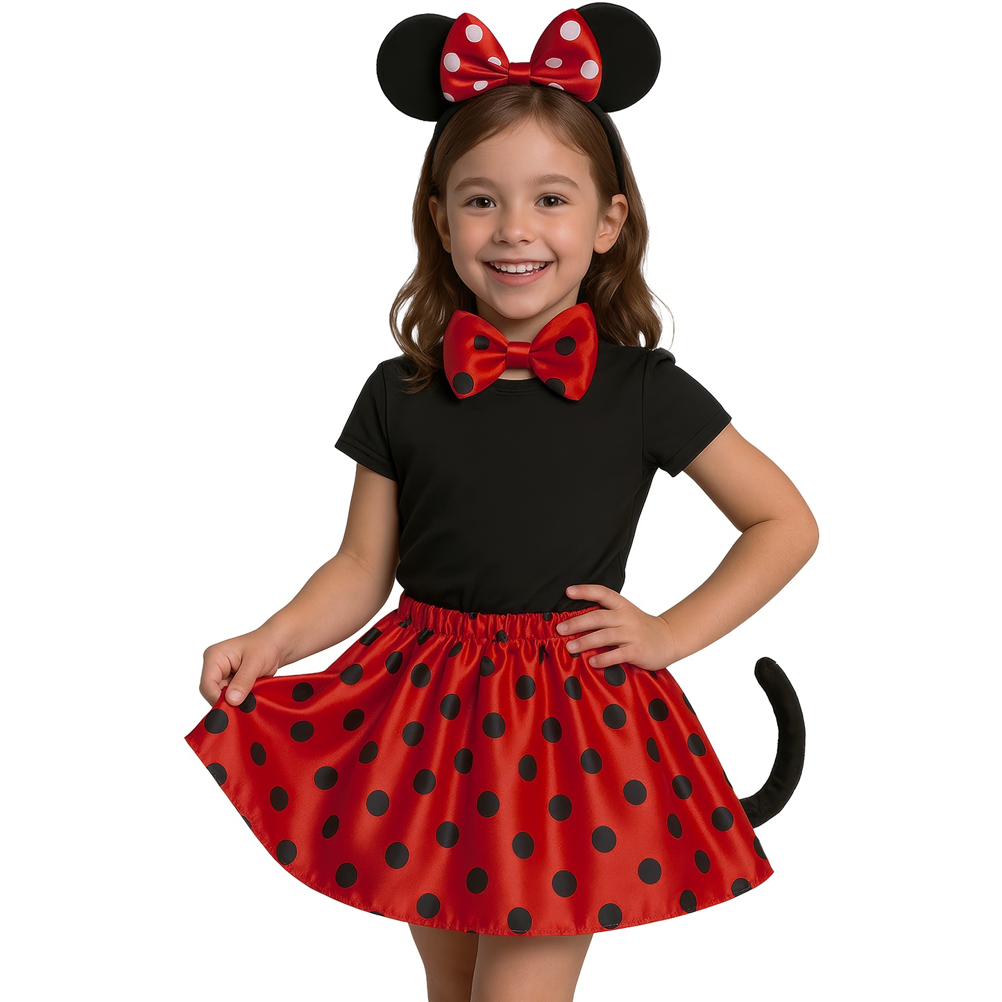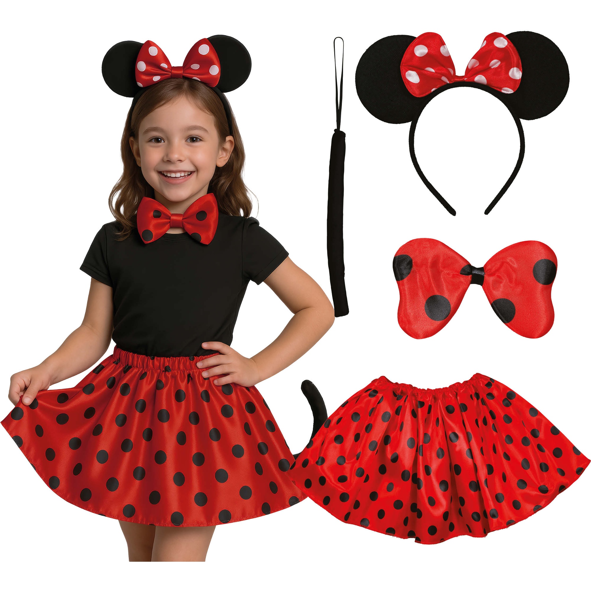Ensemble d'accessoires charmant au style petite souris, conçu pour les filles, avec un imprimé à pois joyeux qui apporte une touche classique et ludique.