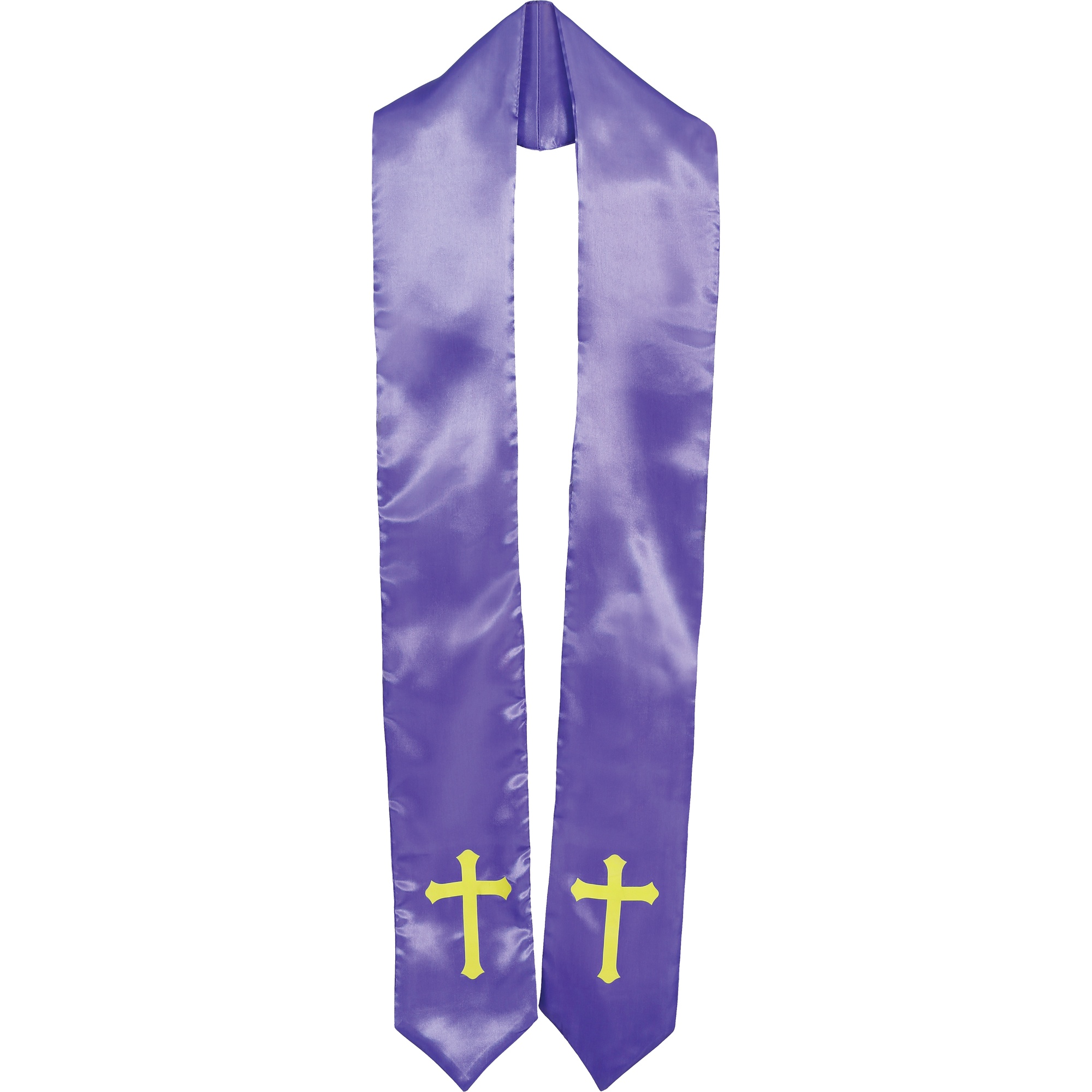 Étole violette à finition satinée reprenant l'apparence traditionnelle d'une étole sacerdotale. Des croix dorées ornent les extrémités pour un détail visible et distinctif. Sa longueur et sa légèreté permettent de la porter confortablement par?dessus n'importe quelle tenue, apportant du réalisme aux costumes et aux mises en scène.
