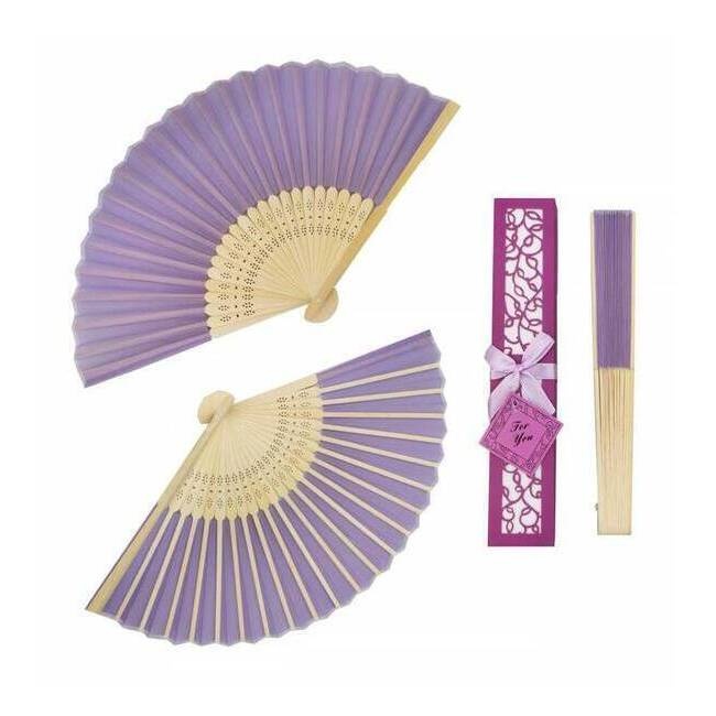 Éventail en bambou et tissu de couleurs assorties - 1 unité