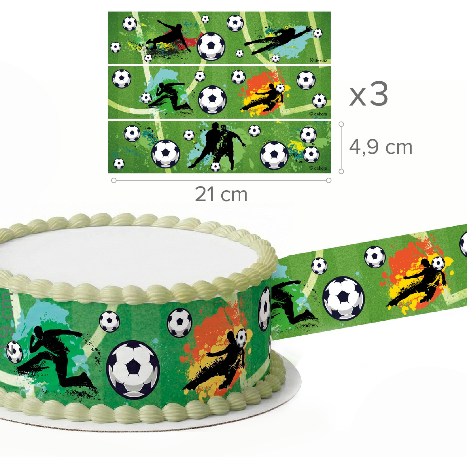 Feuille comestible motif football pour bord de gâteau, 21 x 4,9 cm - 3 pièces