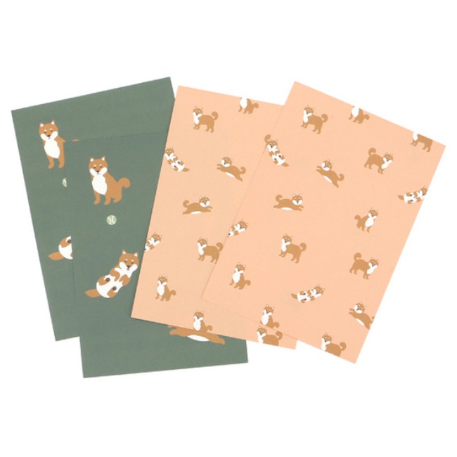 Feuilles avec enveloppes de chien shiba - 6 pièces
