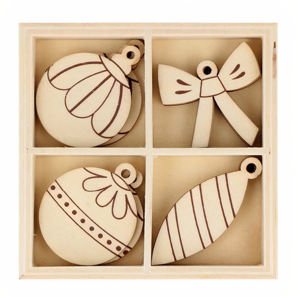Figures en bois découpé pour décorations de Noël - 12 unités