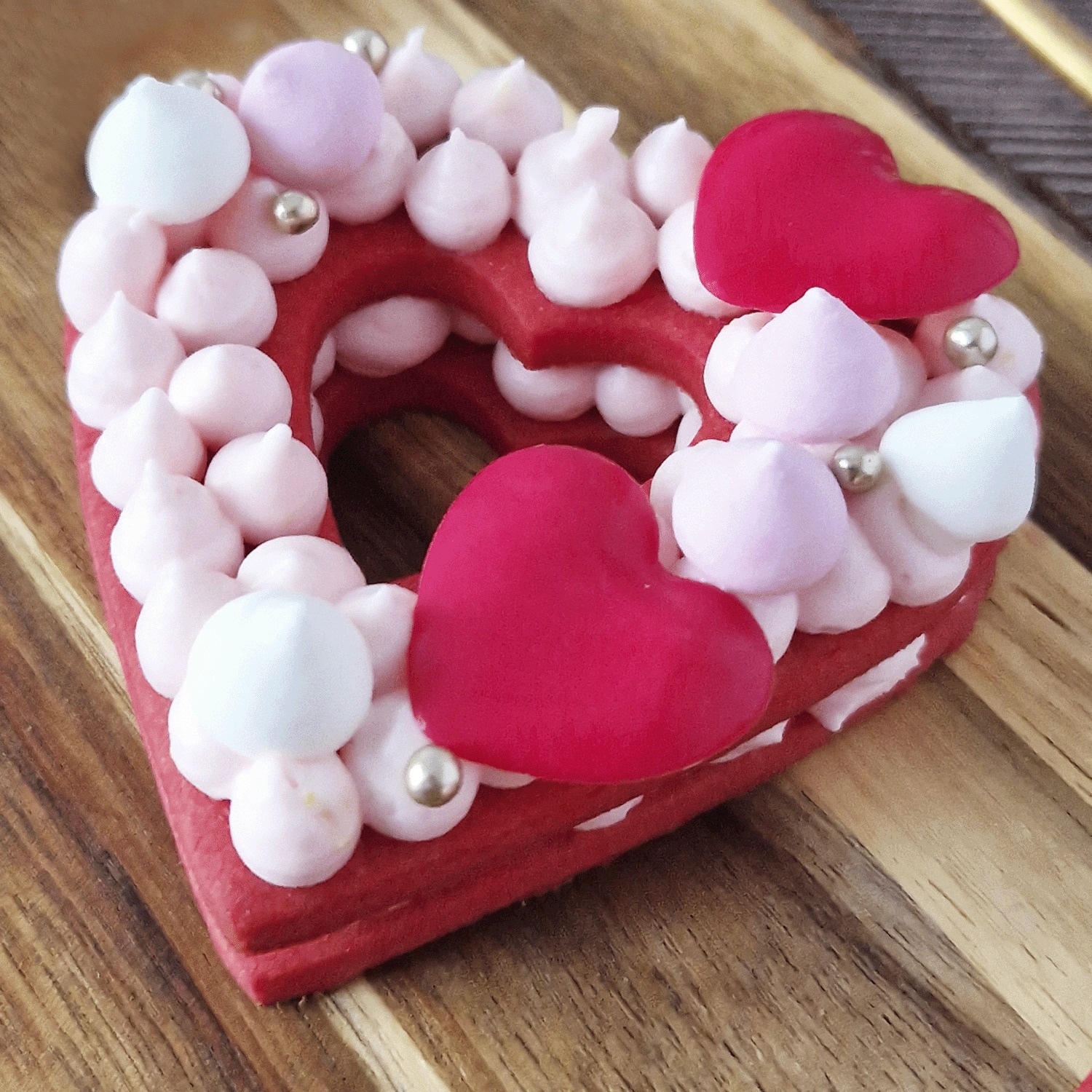 Figurines en chocolat blanc - coeurs rouges (lot de 135 unités)