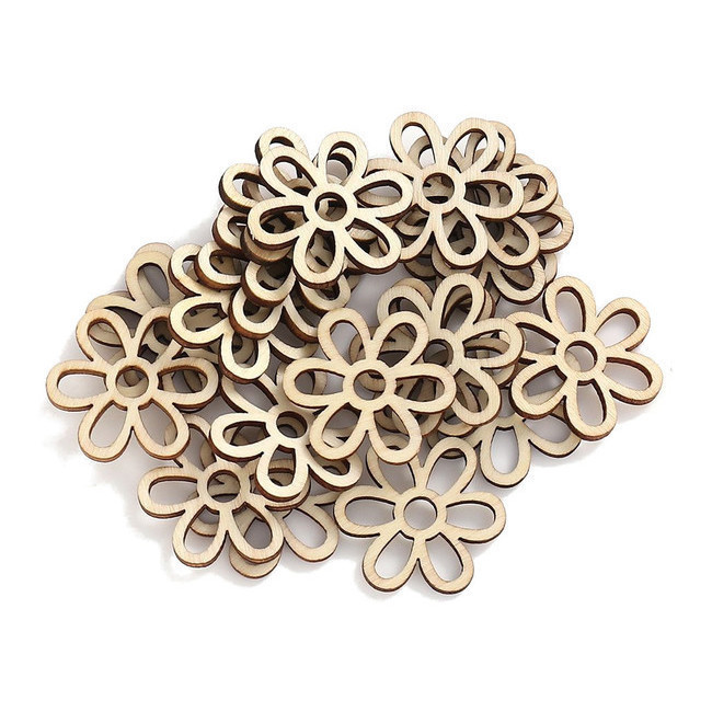 Figurines en bois de silhouette de fleur de 3 cm - 20 unités