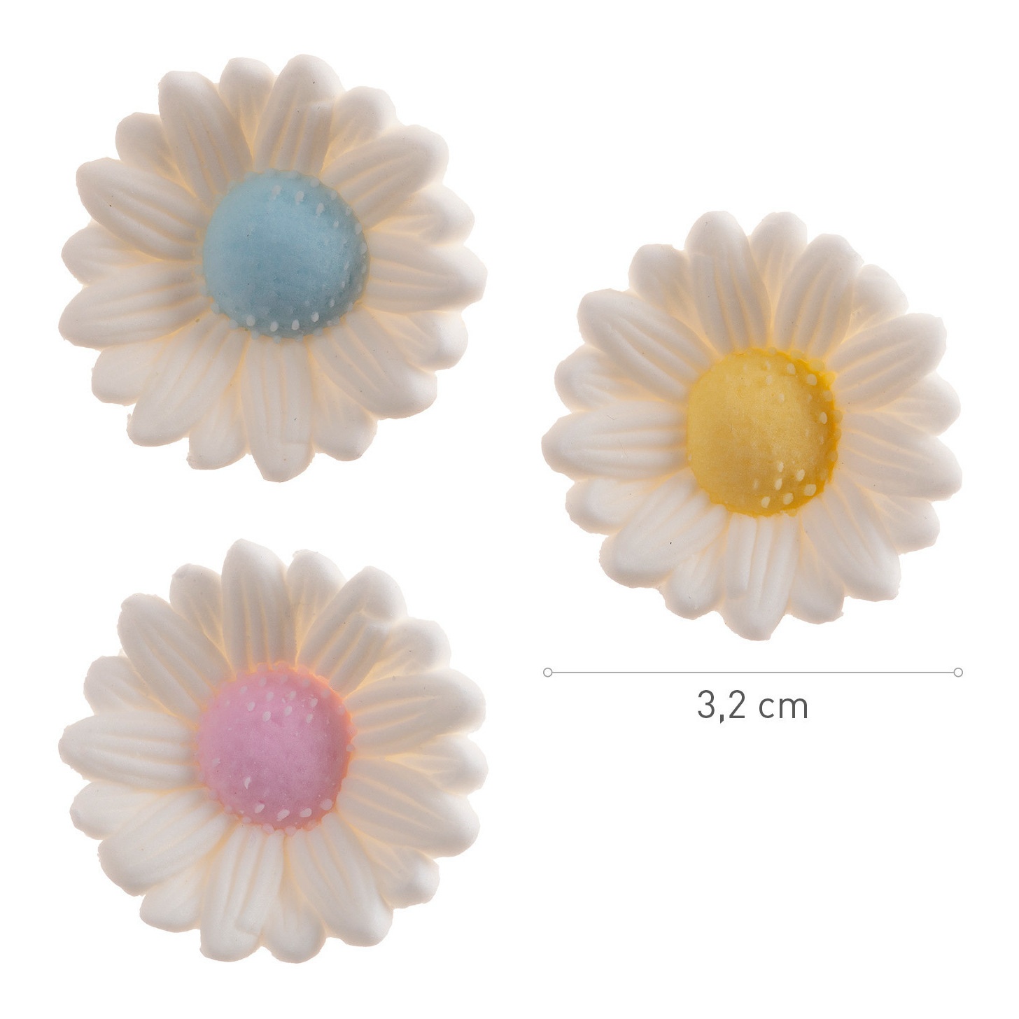 Figurines en sucre de marguerites centre couleurs de 3,2 cm - Dekora - 45 unités