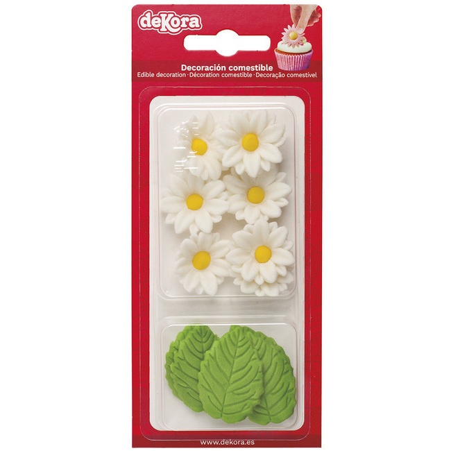 Figurines de sucre marguerites et feuilles - Dekora - 12 unités