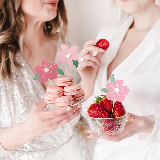 De jolis piques pour cupcakes ou gâteaux avec un design de fleurs.