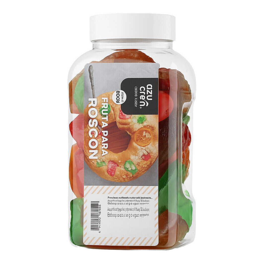 Ingrédients: cerise calibrée (22-24), demi-fruits de cerise calibrée, orange coupée en rondelles, citrouille, sirop de glucose et fructose, sucre, acide citrique (E330), sorbate de potassium (E202), métabisulfite de sodium (E223), curcumine (E100), bleu brillant (E133), érythrosine (E127), carmin de cochenille (E120).