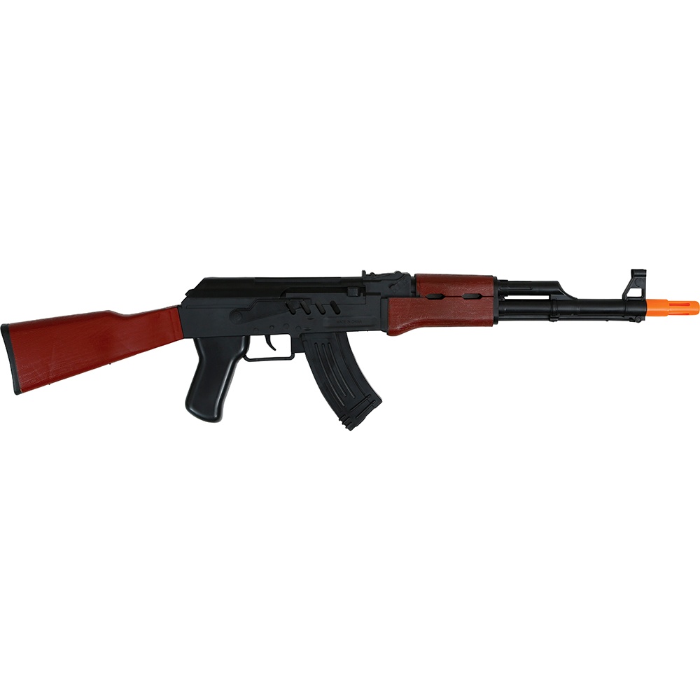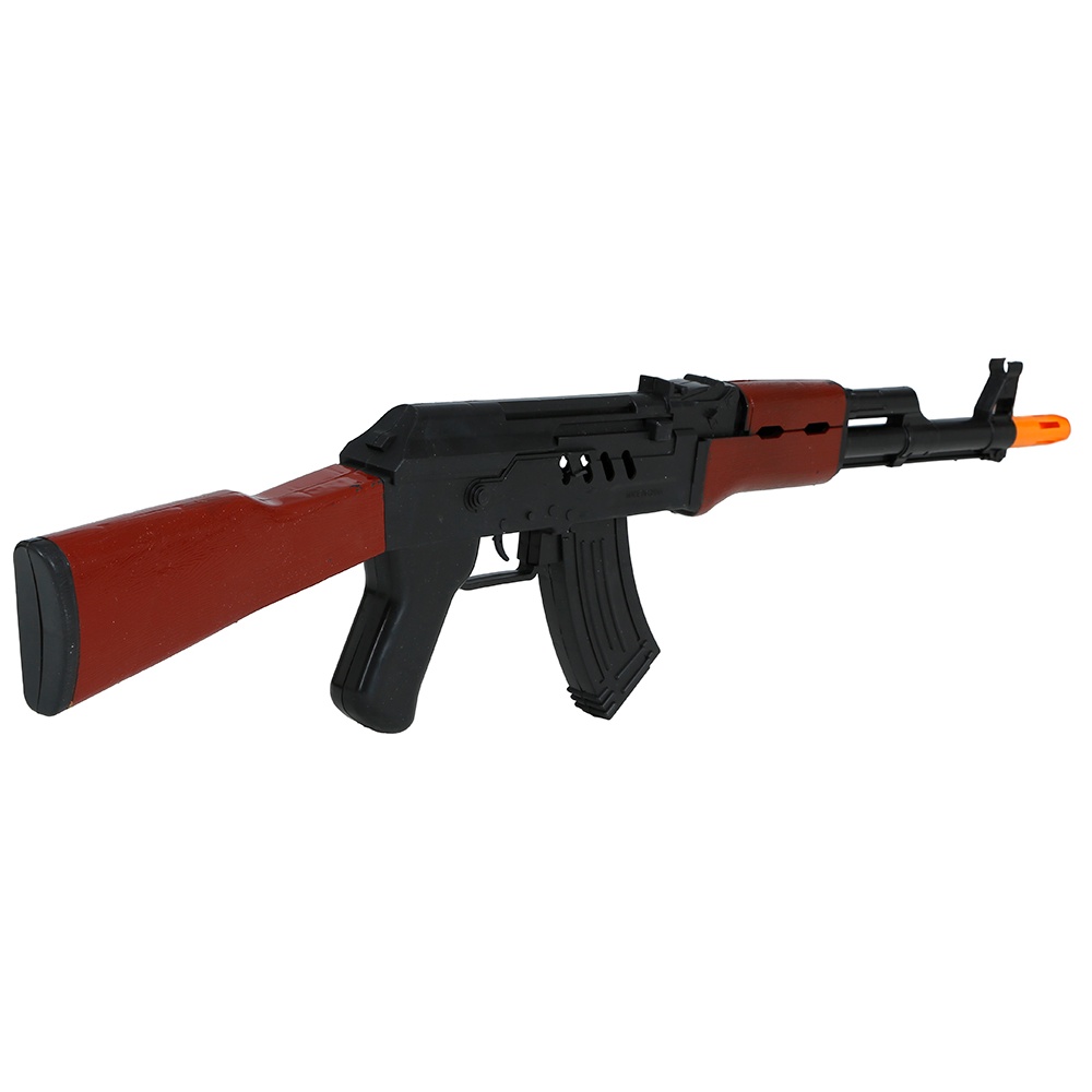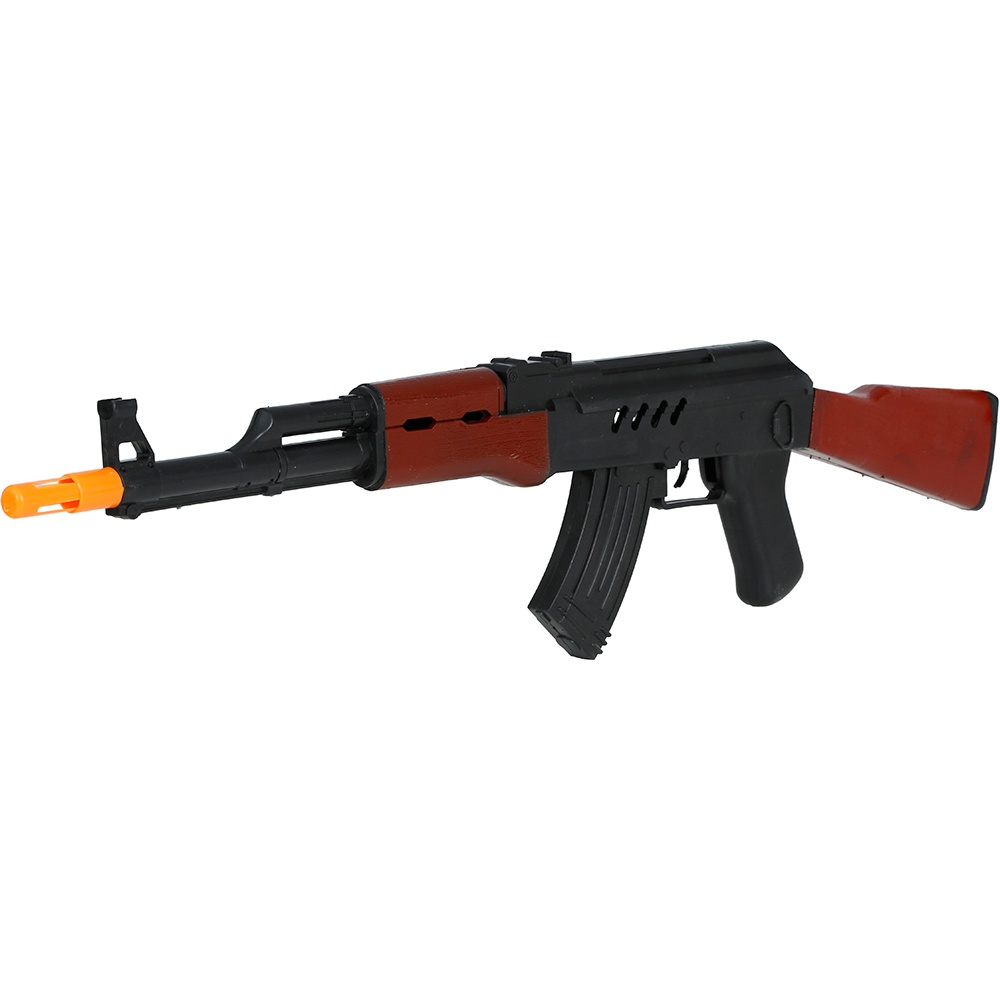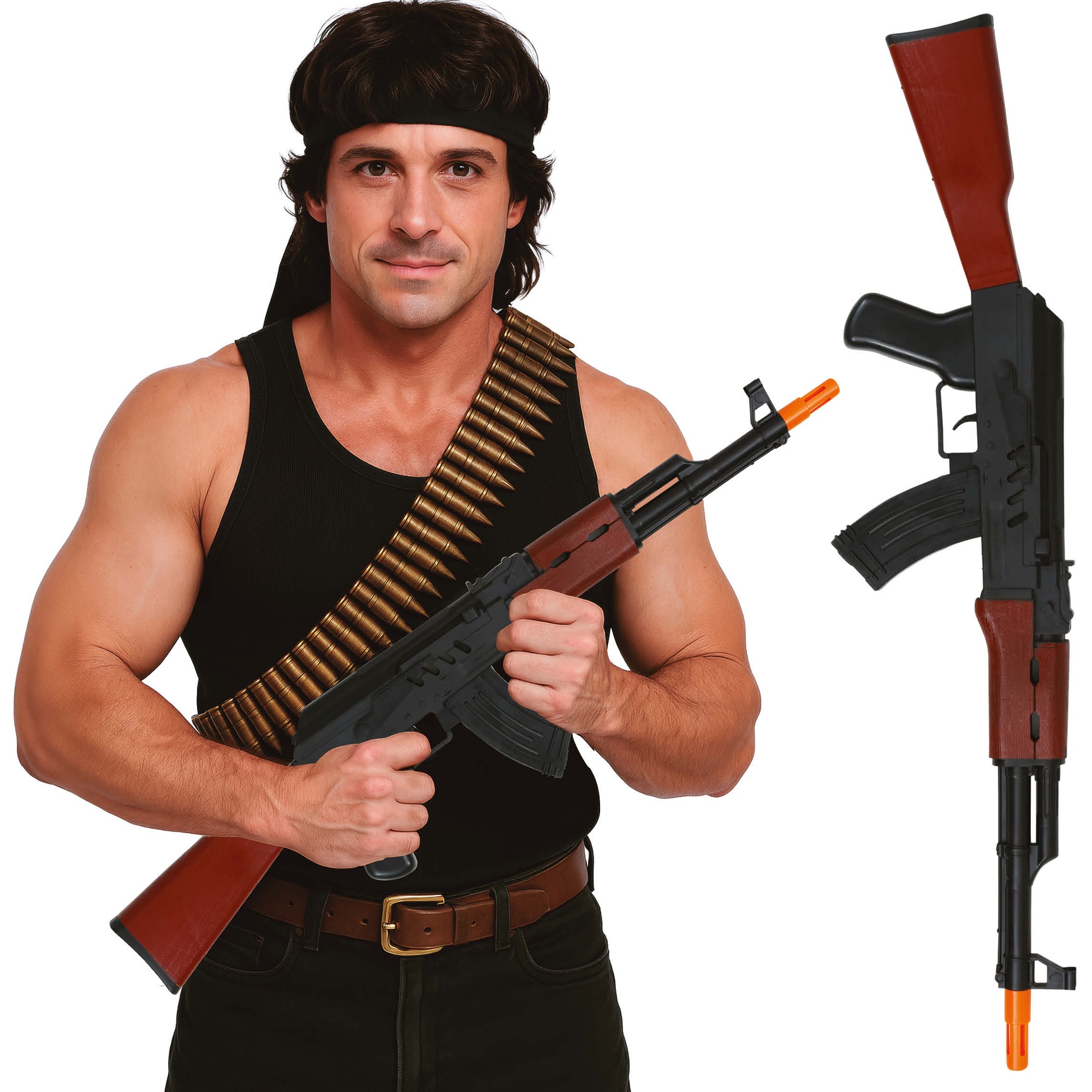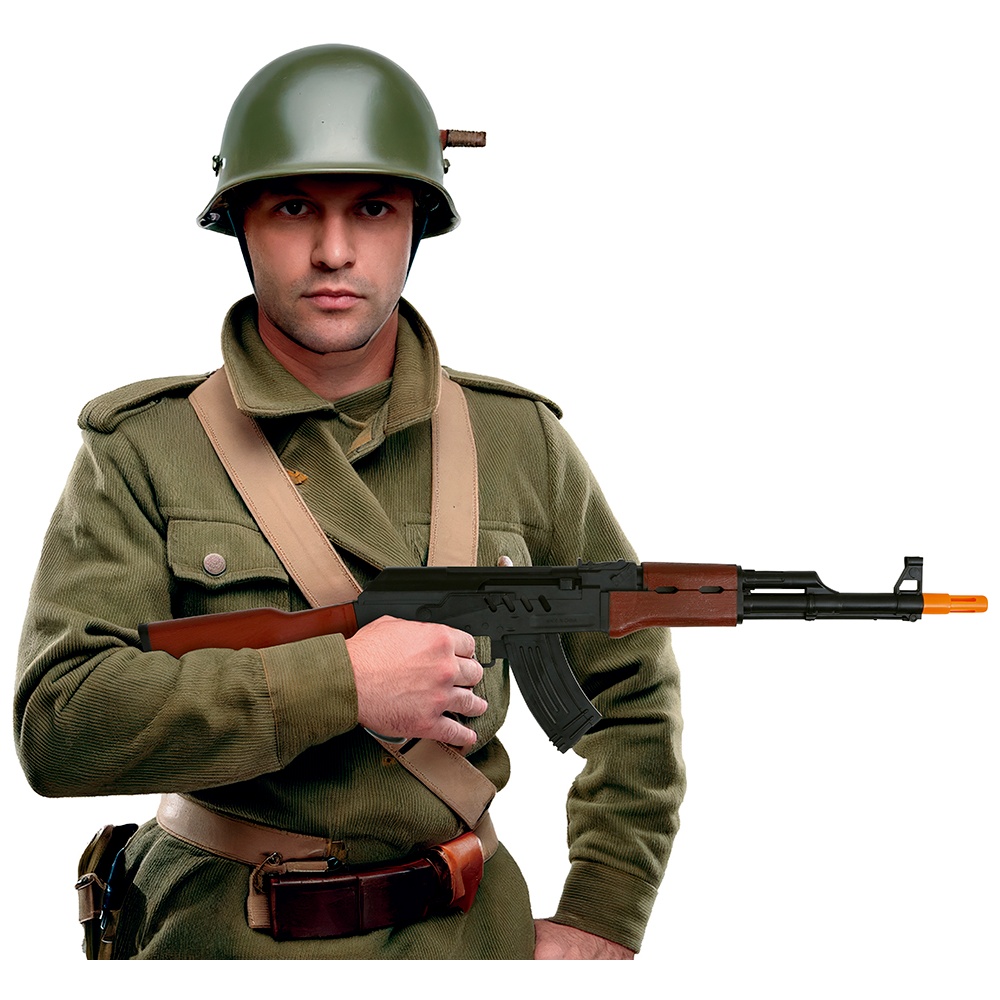 Fusil d'imitation au rendu réaliste, conçu comme complément pour vos déguisements. Il reprend l'allure d'un fusil russe classique avec finitions effet bois et embout de sécurité orange. Léger et facile à manier, il complète parfaitement un look militaire ou de mercenaire et convient pour les séances photo et événements thématiques, sans être une arme réelle.