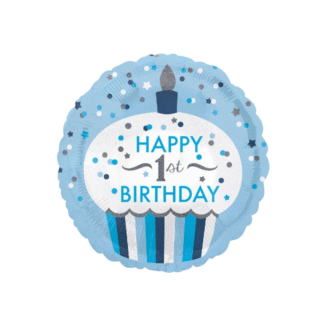 Ballon rond 1 gâteau d'anniversaire bleu 45 cm - Anagramme