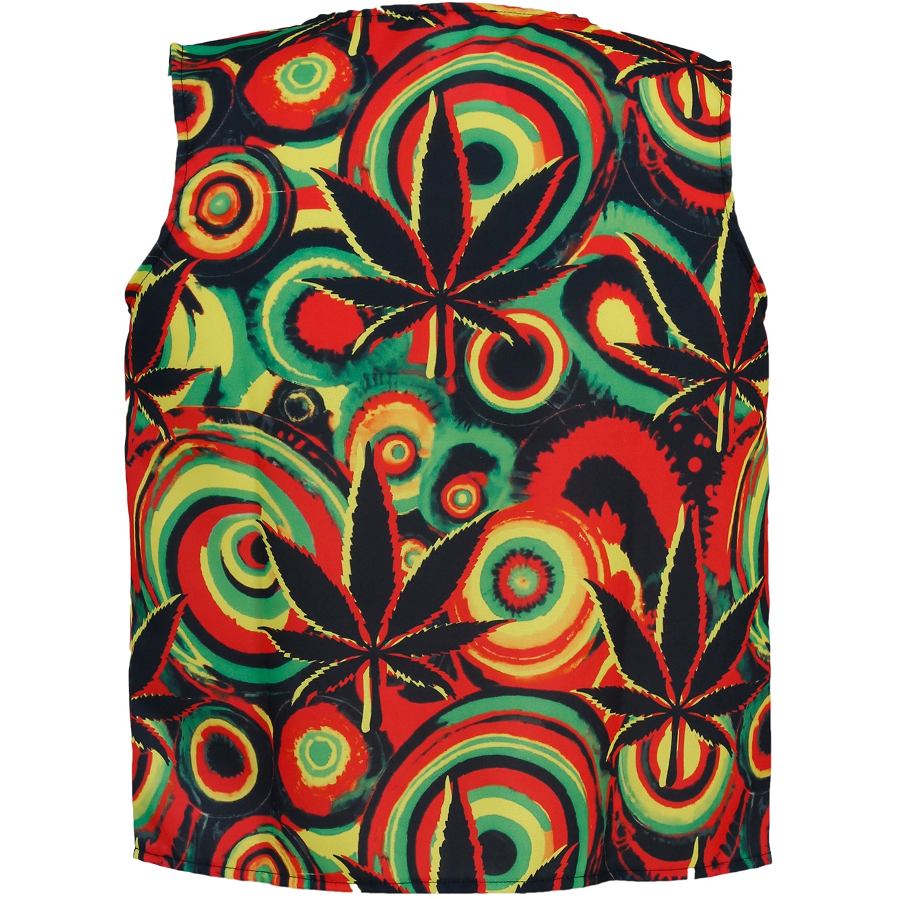 Gilet au motif vibrant et aux couleurs intenses qui attirent le regard. Sa coupe ouverte sans manches facilite l'enfilage et permet de le porter par?dessus n'importe quel vêtement. Confectionné en polyester léger, il garantit confort et tombé fluide pour profiter de la fête avec style. Parfait comme pièce forte pour le carnaval et les soirées à thème.