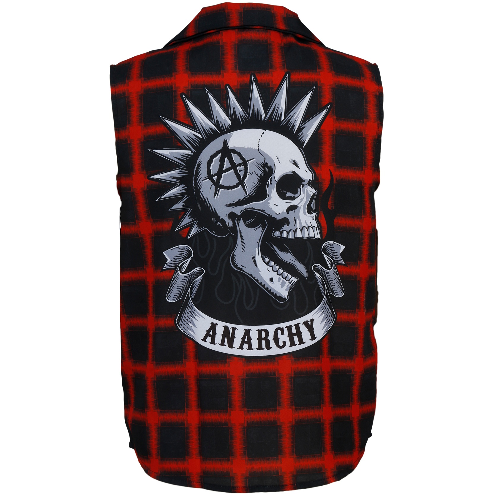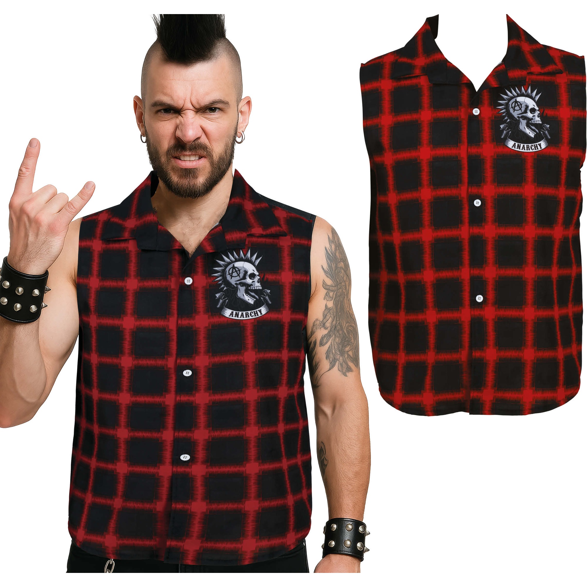 Gilet sans manches punk rock avec imprimé tête de mort, qui confère une allure rebelle et urbaine. Sa coupe sans manches et son boutonnage frontal offrent un look audacieux et un confort optimal. Le motif à carreaux associé au graphisme tête de mort lui donne un rendu authentique et accrocheur. Confectionné en polyester léger, il se porte facilement et se marie parfaitement avec vos accessoires rock.