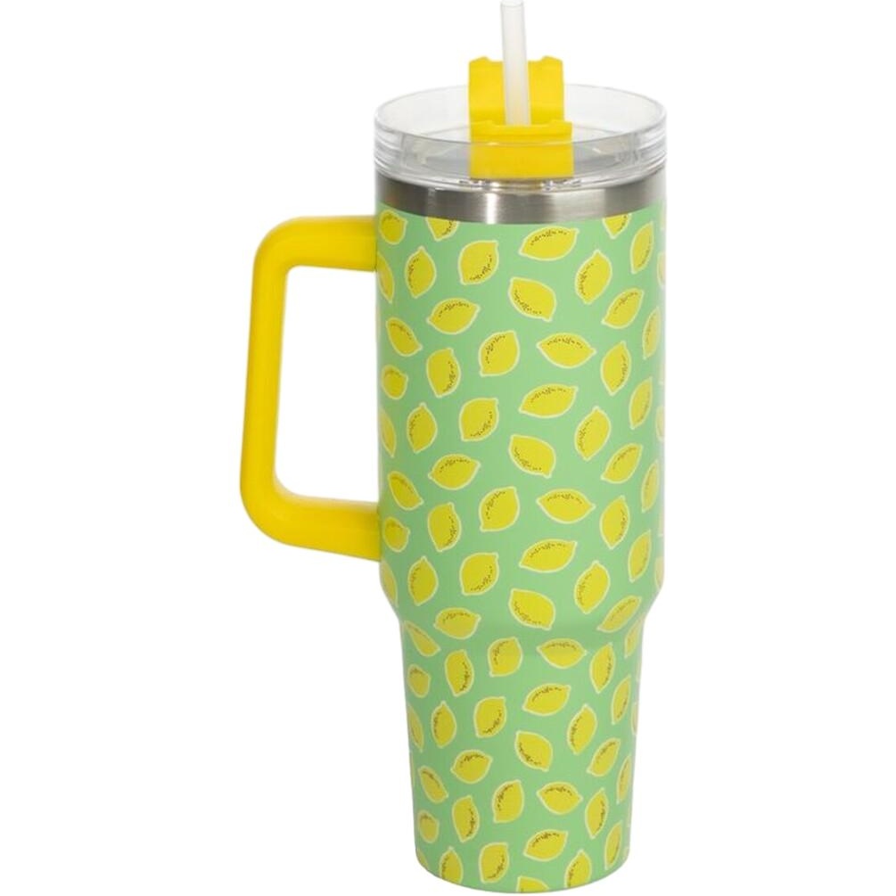 Savourez vos boissons avec un style estival grâce à ce gobelet isotherme au motif citrons. Son design avec anse et couvercle à paille permet de boire confortablement en déplacement, tandis que sa double paroi conserve la température de vos boissons. Idéal à emporter au travail, à la plage ou en excursion, il apportera une touche fraîche et colorée à votre quotidien.