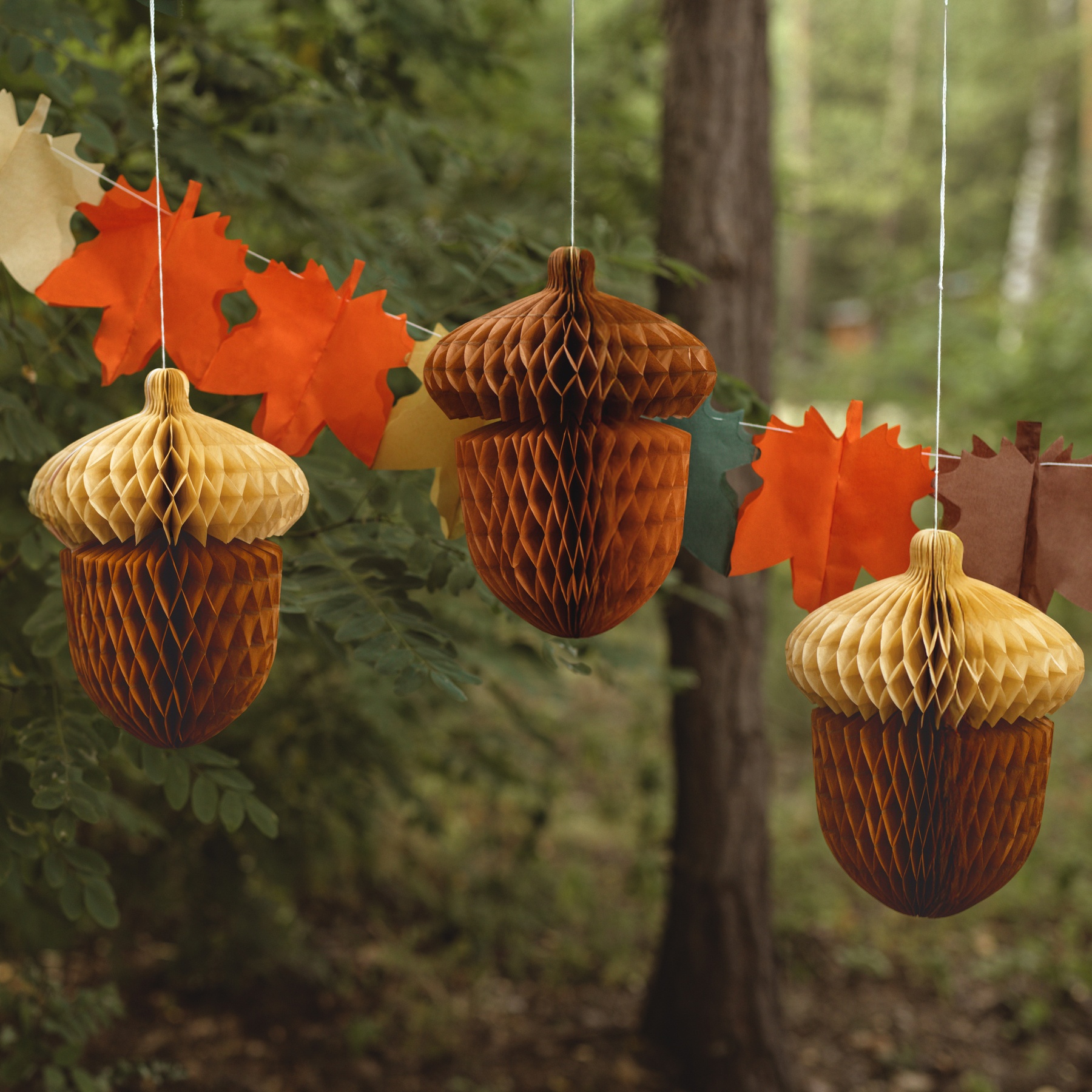 • Guirlande de feuilles de papier aux couleurs automnales.