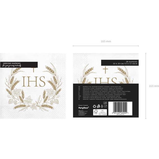 Serviettes de Communion IHS de 16,5 cm - 12 unités