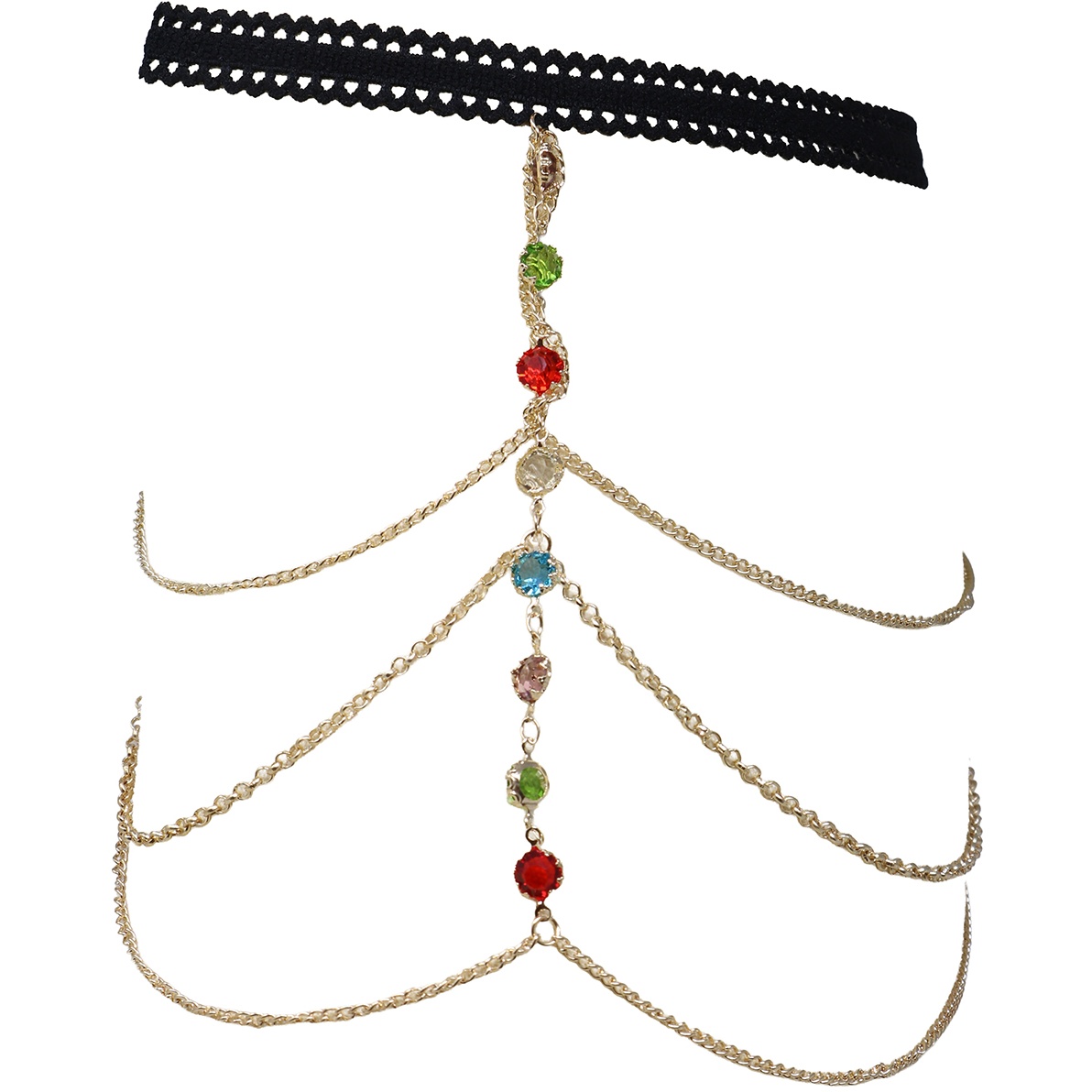 Apporte une touche bohème-chic et féminine avec des chaînes en cascade et des pierres colorées qui créent mouvement et éclat. Design délicat mettant la jambe en valeur, parfait pour sublimer robes et jupes. Confectionnée en métal et PVC, finition dorée et perles aux couleurs vives. La bande supérieure est conçue pour vous offrir un maintien confortable et un ajustement adaptable.