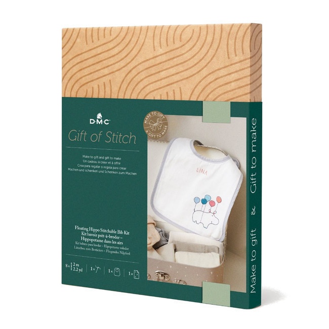 Kit de broderie avec boîte cadeau - Bavoir avec hippopotame volant - DMC