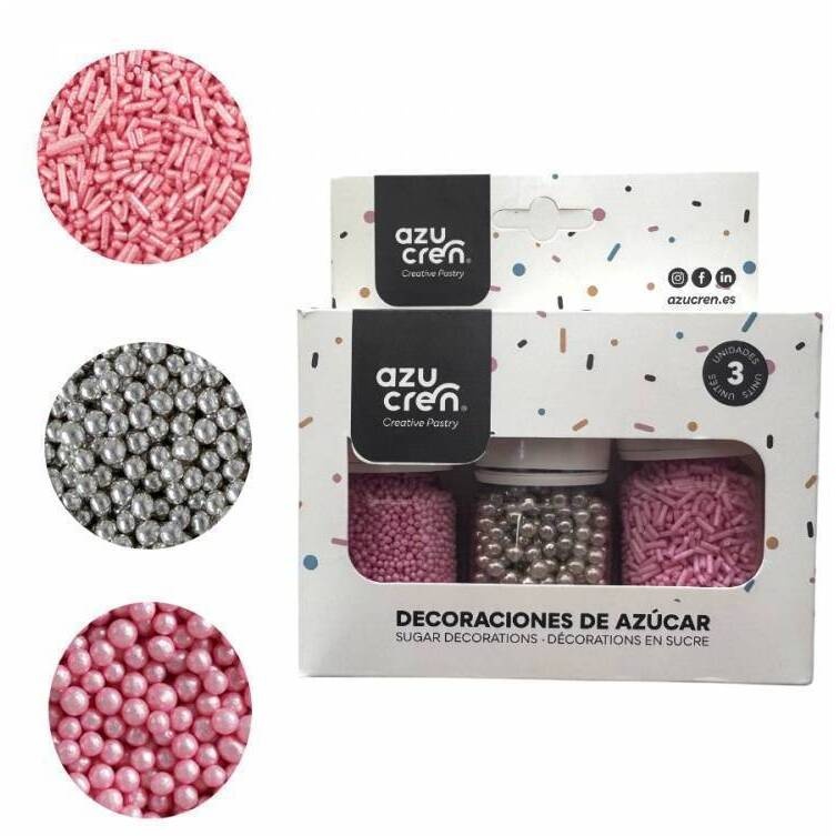 Ingrédients perles argentées: Sucre, amidon de maïs, maltodextrine, gélatine de poisson, colorant E174.