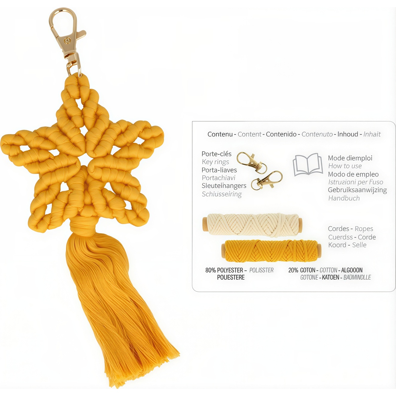 • Ce kit vous permettra de réaliser 2 porte-clés en macramé.