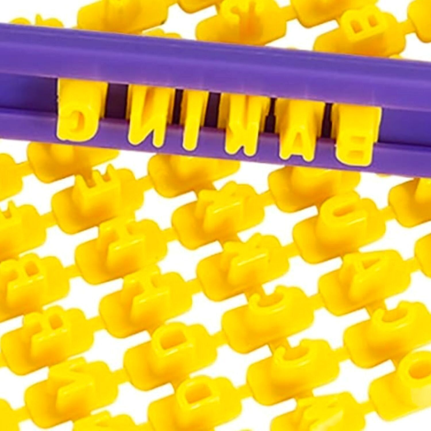 - Comprend 72 tampons alphanumériques (54 lettres et 18 chiffres) et 1 support pour les organiser.
