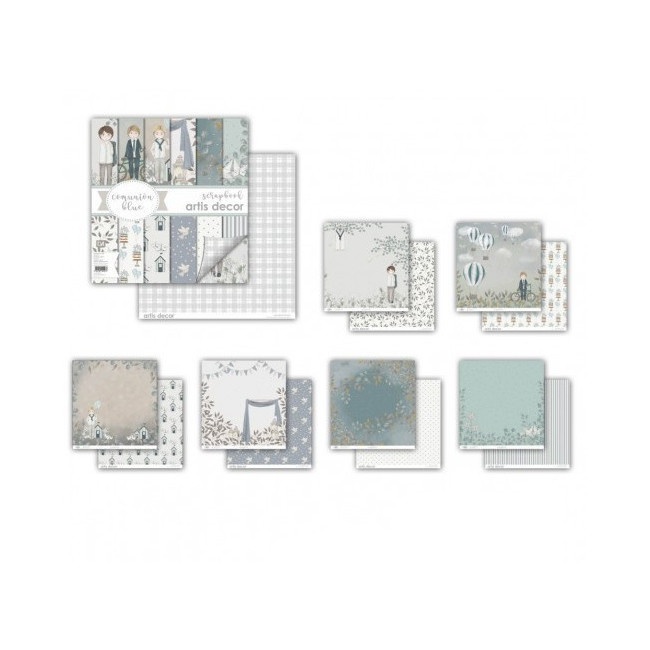 Kit de scrapbooking papiers, bloc et die cuts en bois de Communion Blue - Artis decor