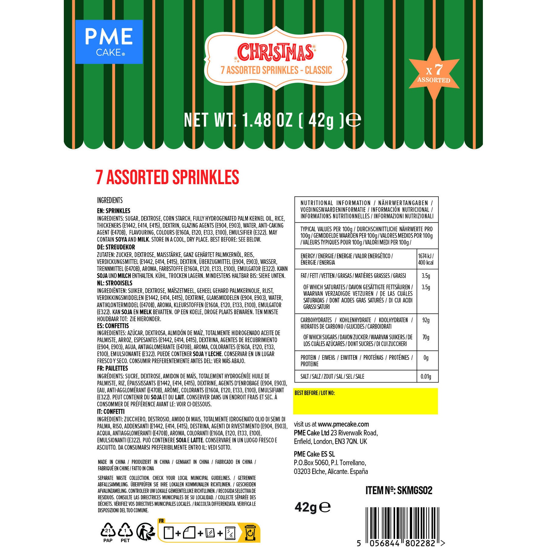 Kit de sprinkles classique 7 assortiments - PME - 42 gr