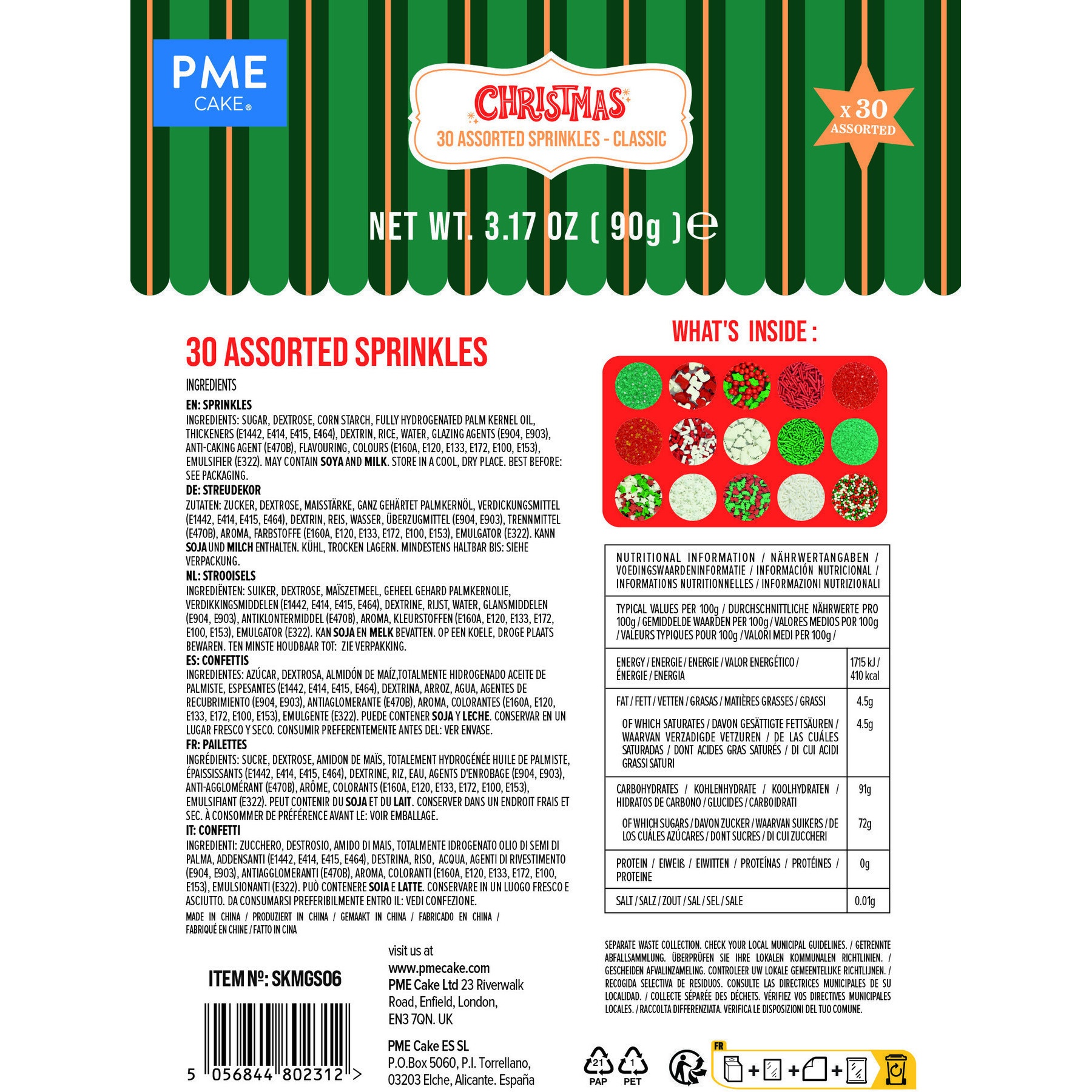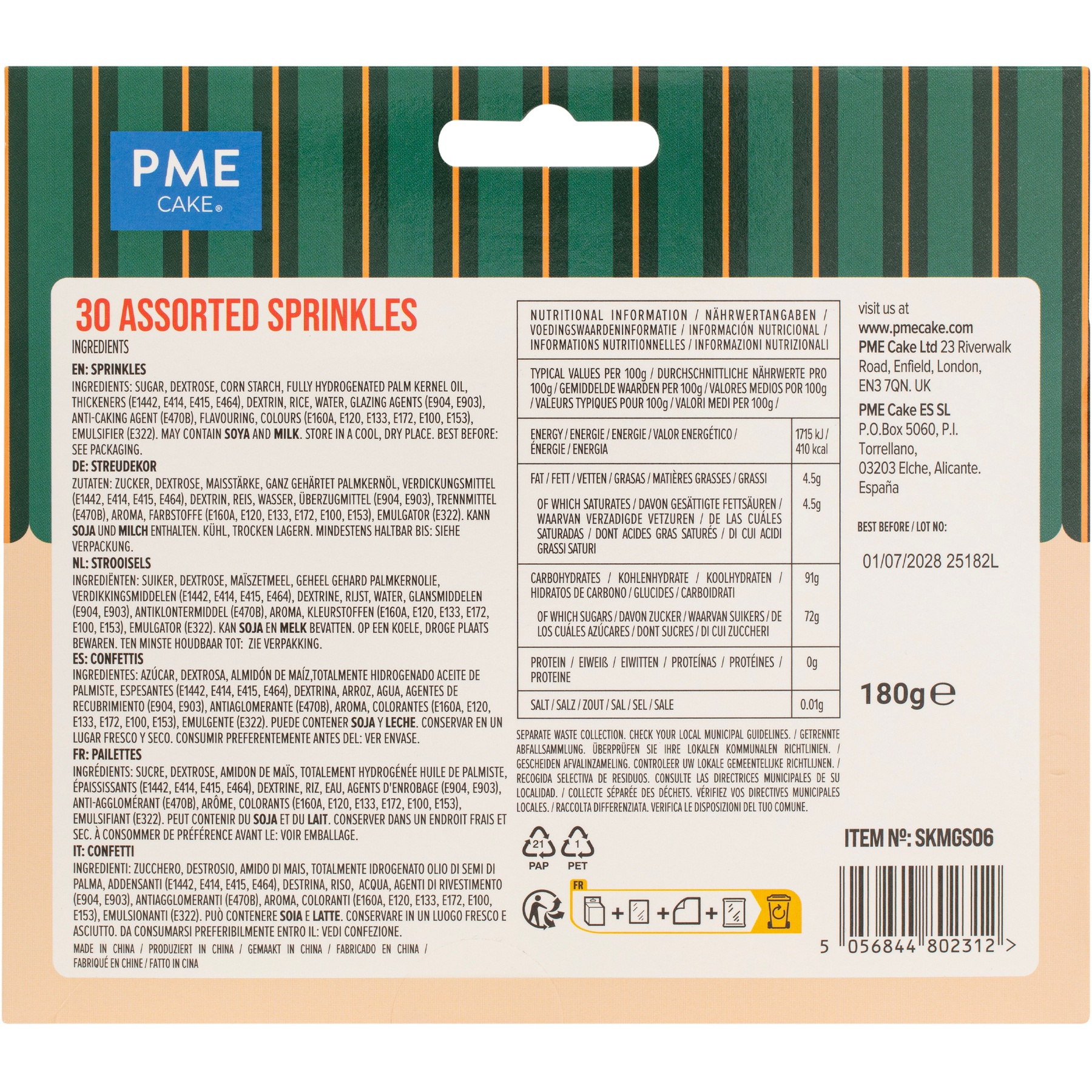 Kit de sprinkles classiques assortis 30 variétés - PME - 180 g