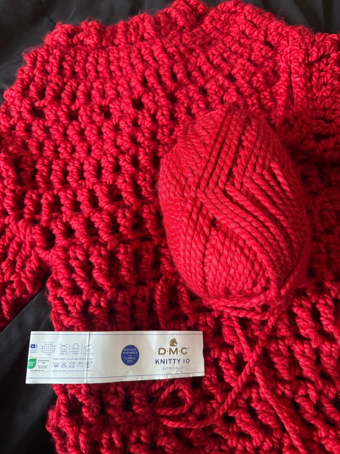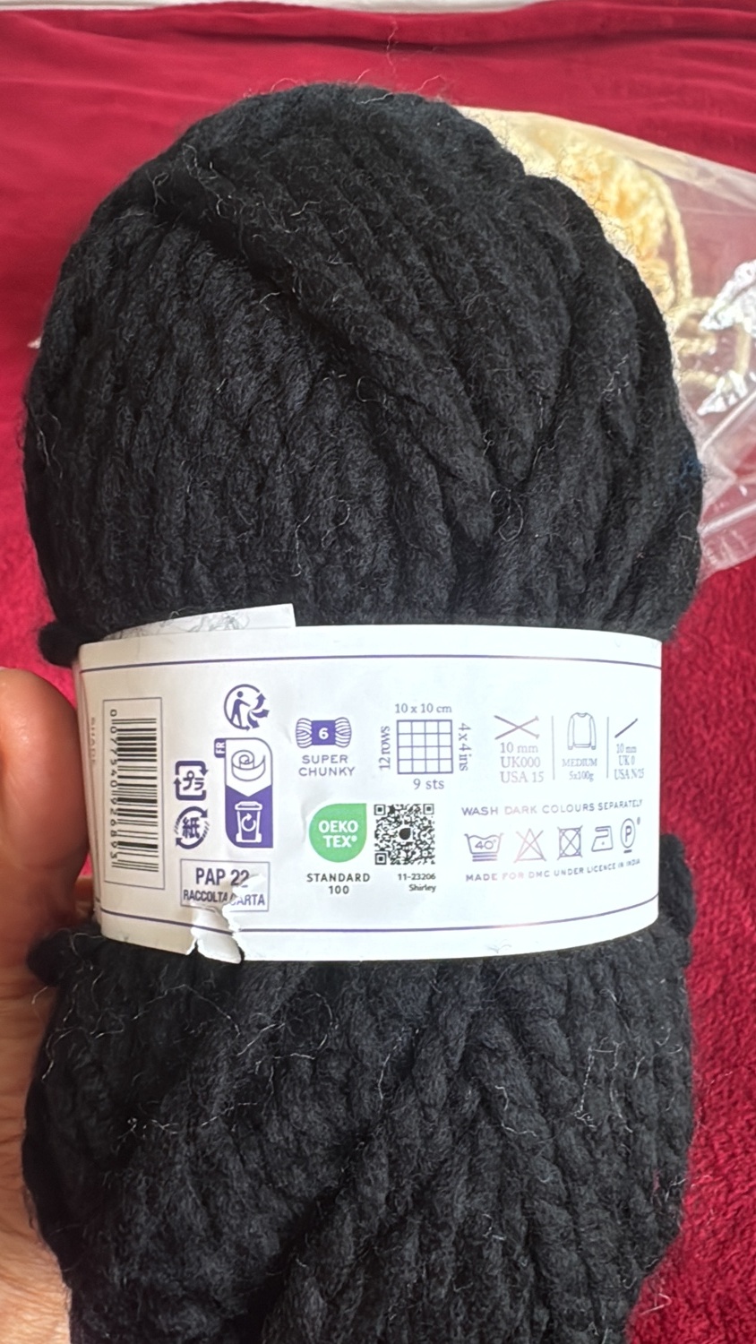 C'est une laine très épaisse qui me permet de travailler rapidement, mais certaines couleurs ne correspondent pas à la photo du site Internet, ce qui a affecté le travail que j'allais faire.